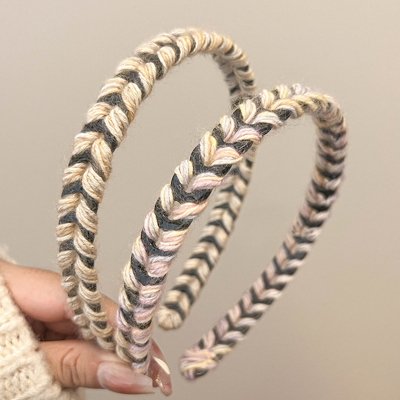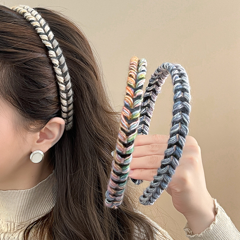 손으로 짠 헤어 밴드 2024 새로운 여성 하이 엔드 감각 외국 스타일 패션 세척 헤어 클립 압력 헤어 헤드 밴드