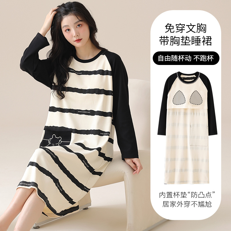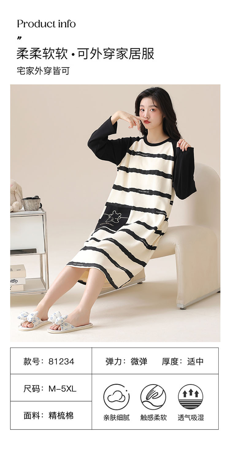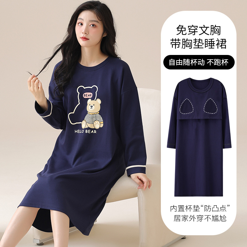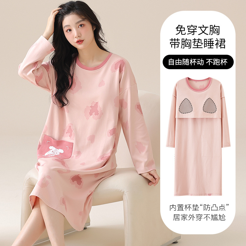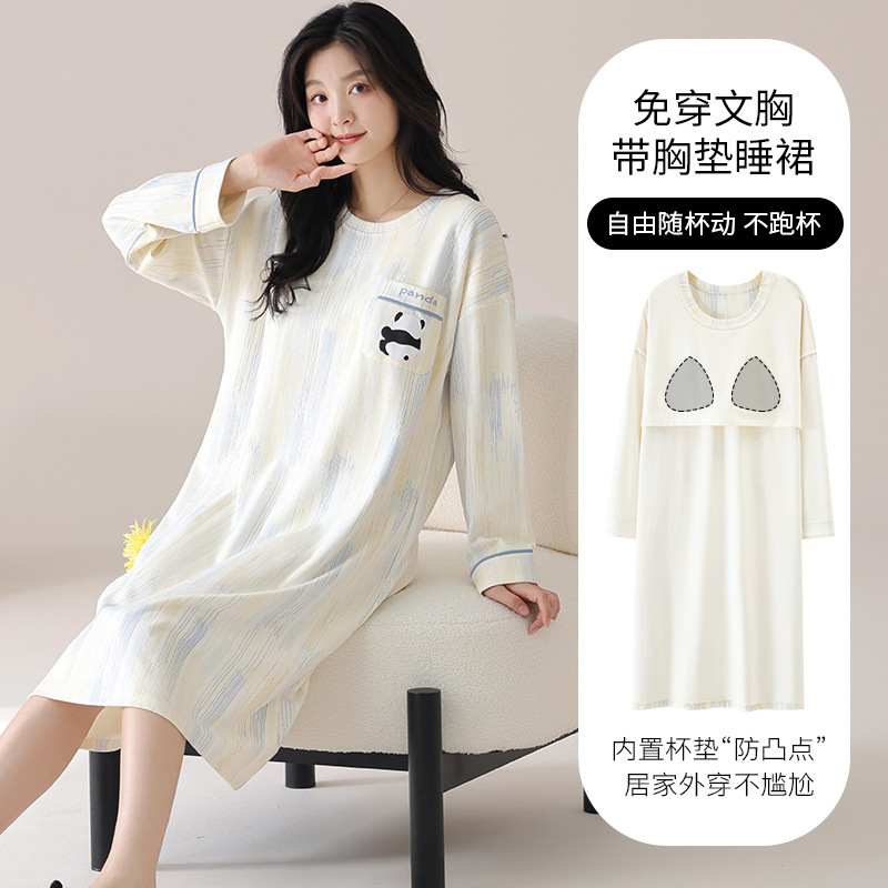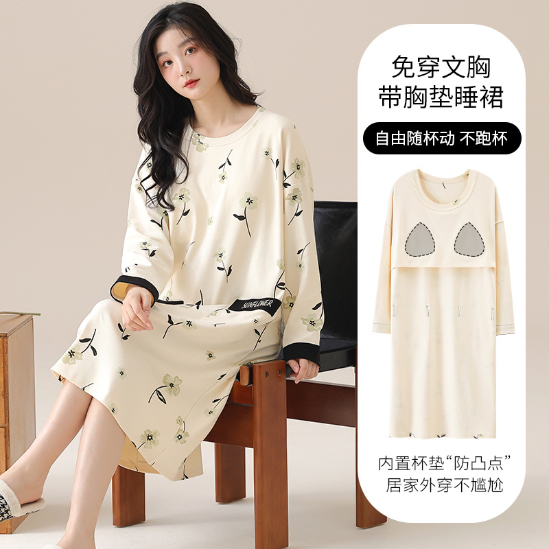 가슴 패드 원피스 긴 소매 순수 코튼 새로운 5xl 플러스 사이즈 한국 스타일 편안한 원피스 나이트 드레스스토어 가기