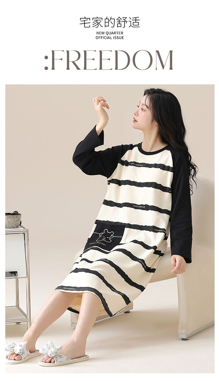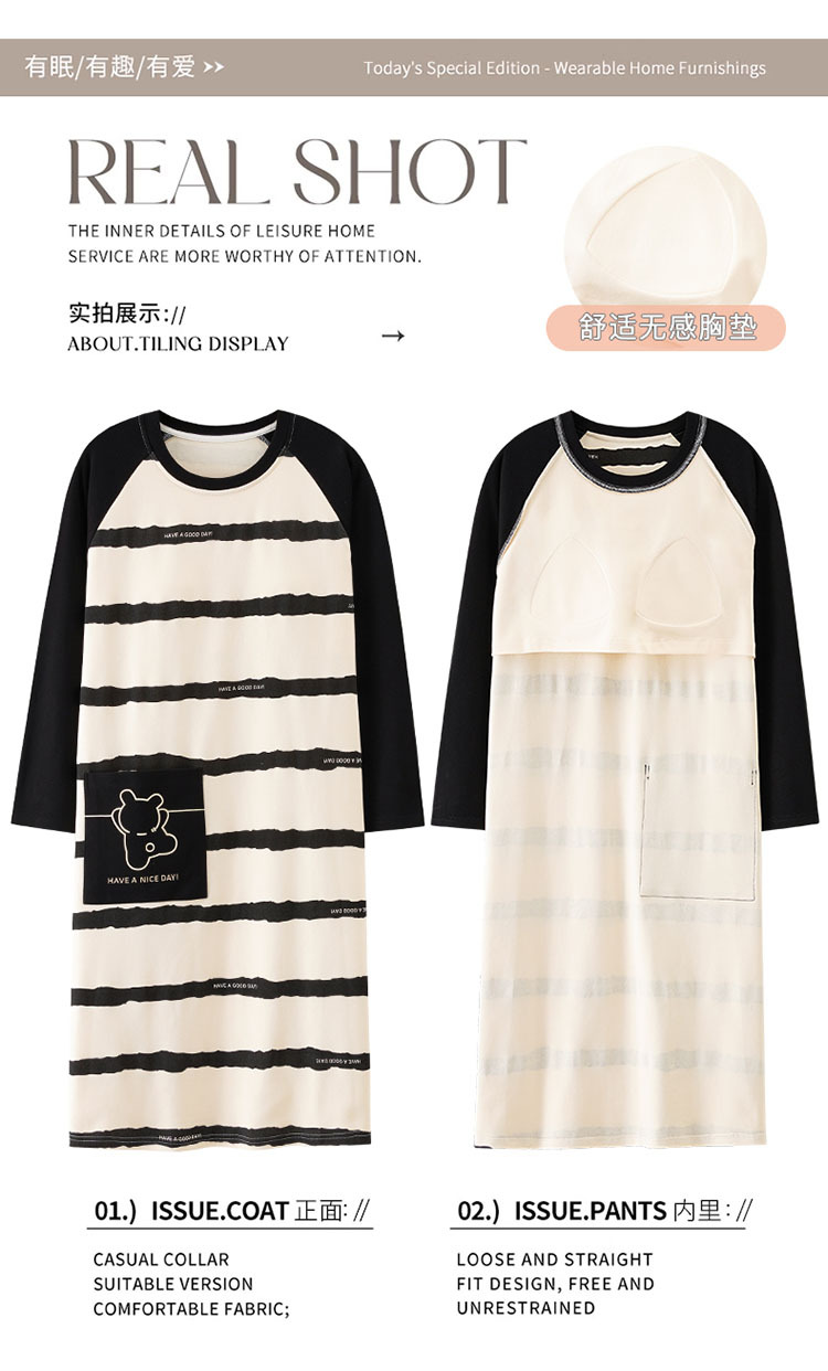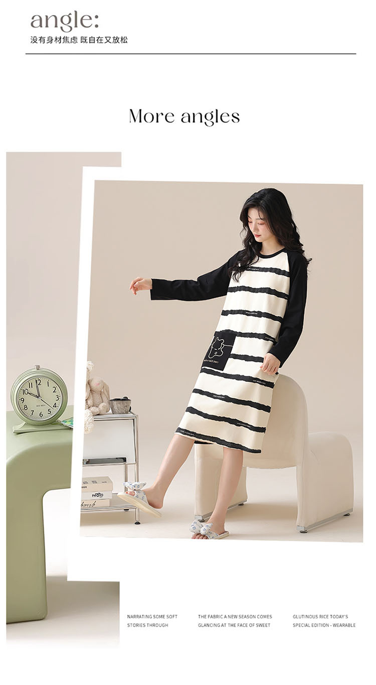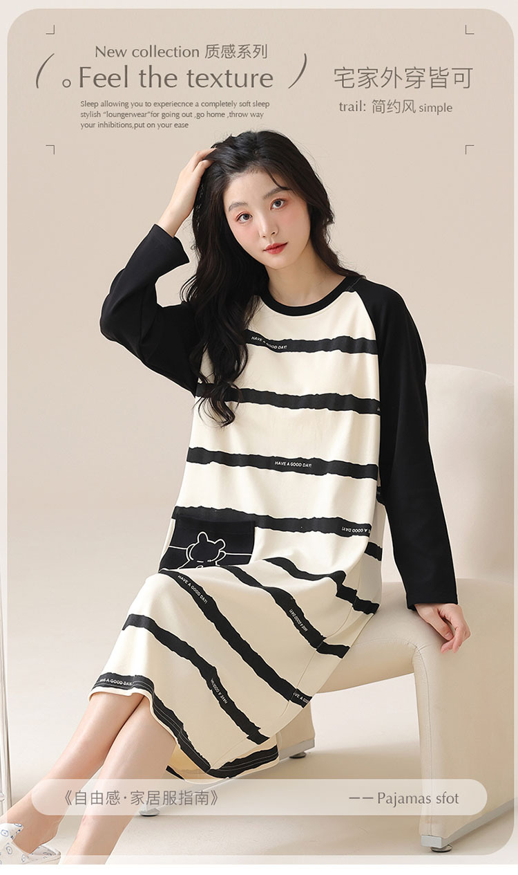 가슴 패드 원피스 긴 소매 순수 코튼 새로운 5xl 플러스 사이즈 한국 스타일 편안한 원피스 나이트 드레스스토어 가기
