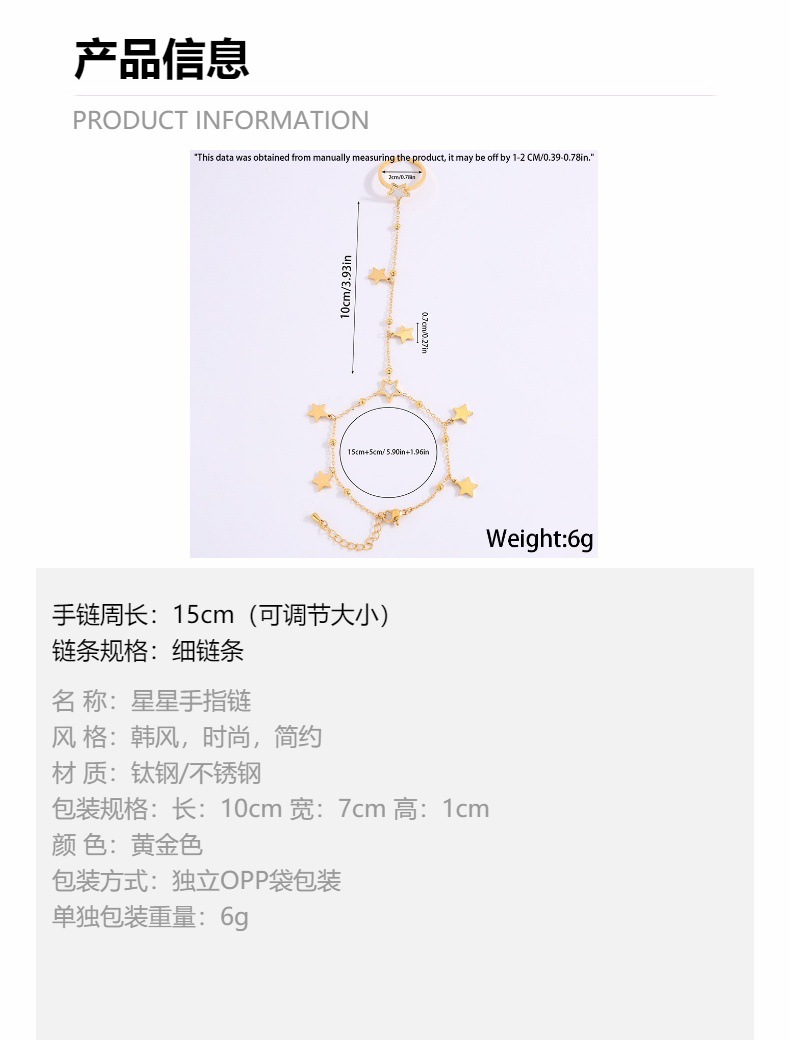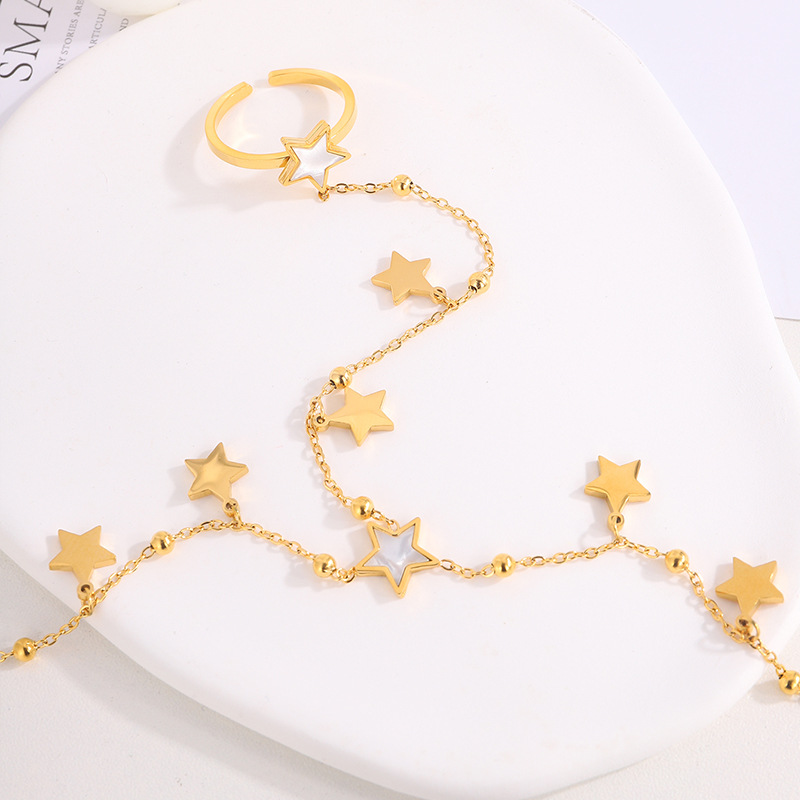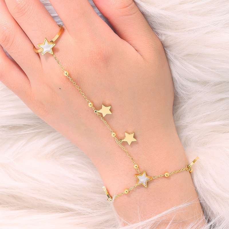 새로운 비 페이딩 5 점 별 반지 DIY 팔찌 소녀 틈새 하이 엔드 센스 제조업체 직접 판매 스테인레스 스틸 팔찌스토어 가기