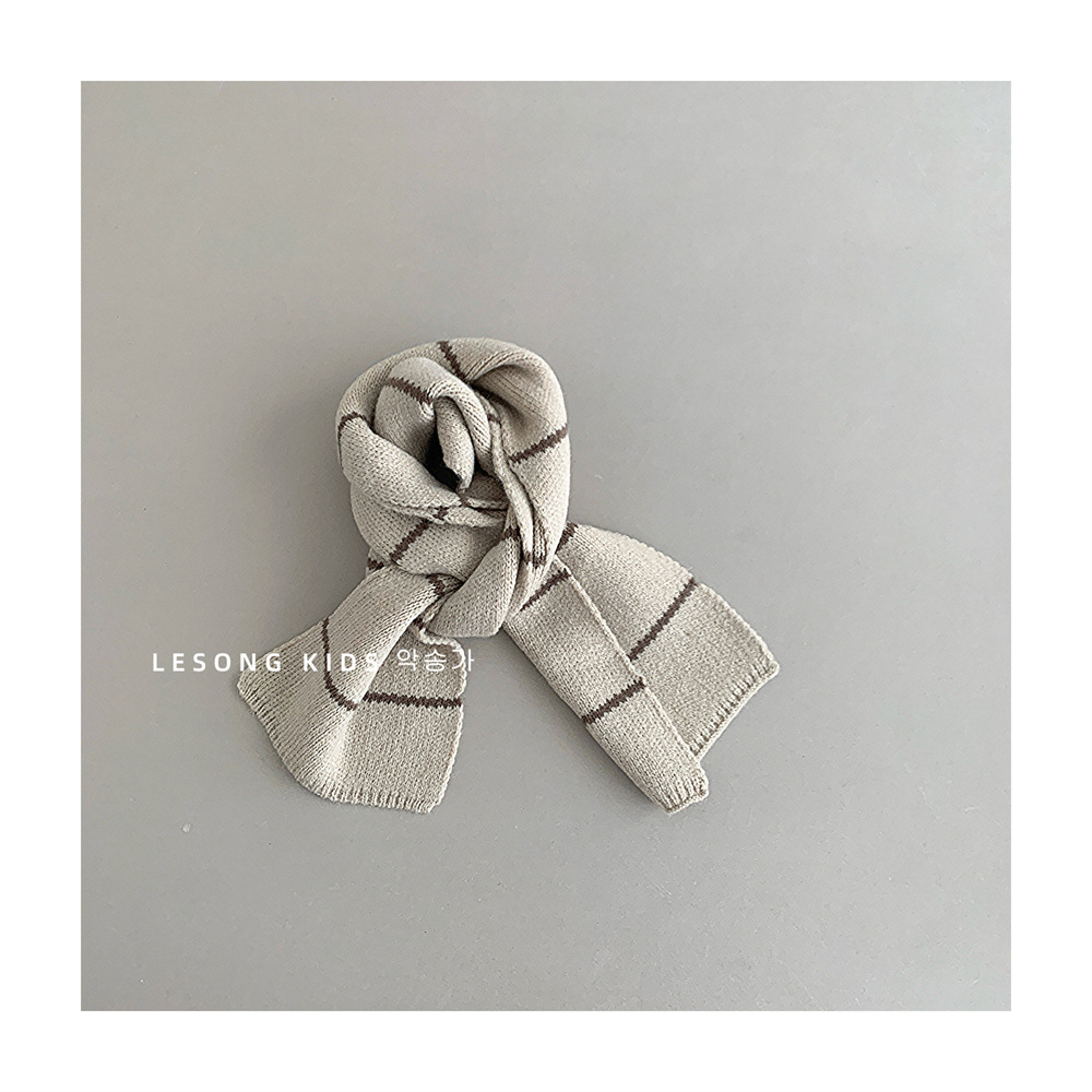 새로운 한국 스타일 간단한 줄무늬 어린이 니트 스카프 인 스타일 간단한 올 매치 가을과 겨울 새로운 스타일 소년과 소녀