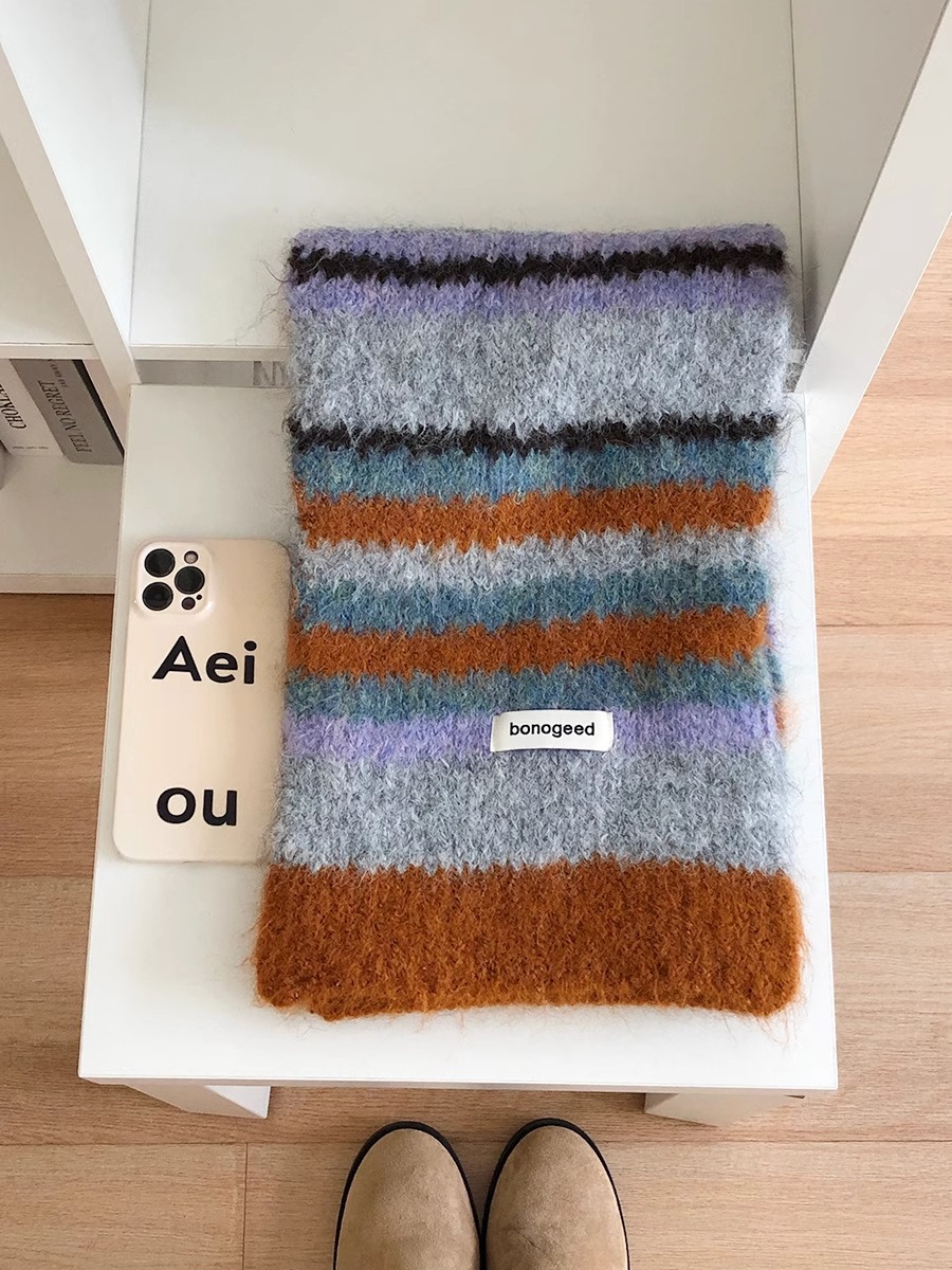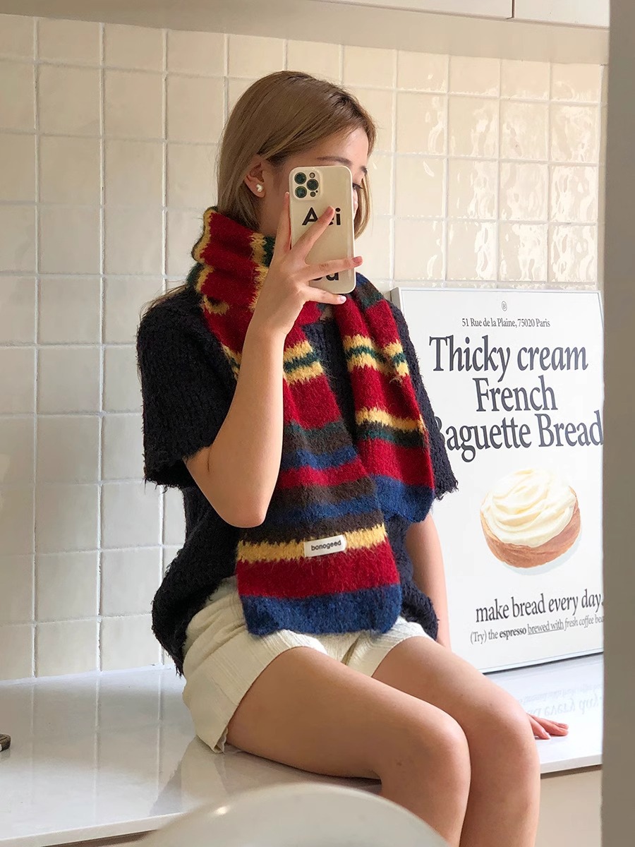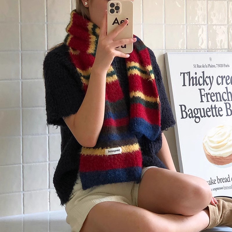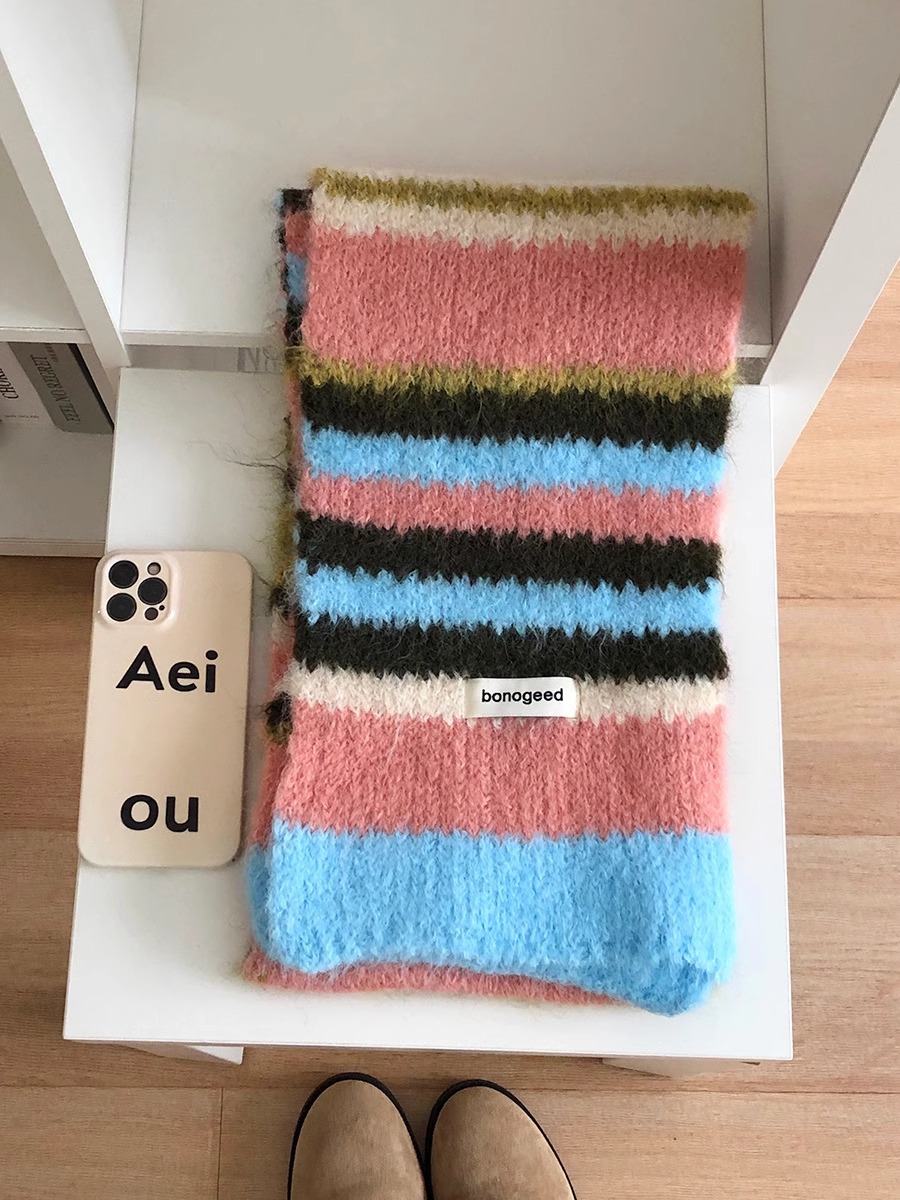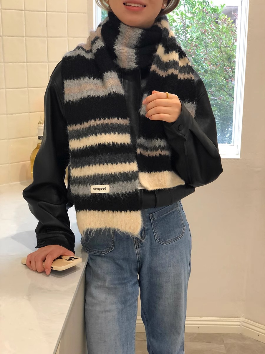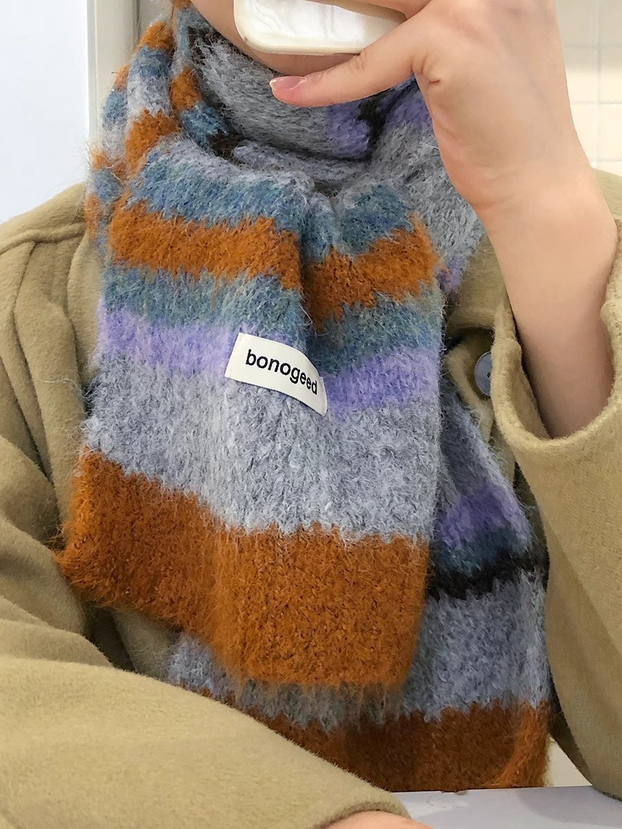 양모 스카프와 함께 여성의 2024 새로운 가을과 겨울 한국 스타일 높은 수준의 분위기 대비 컬러 스카프 목 보호 남성 패션스토어 가기
