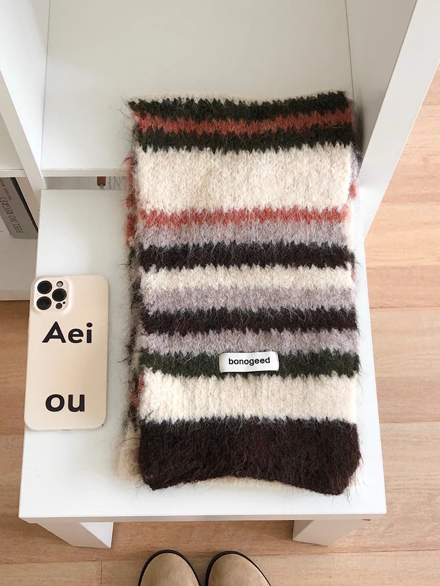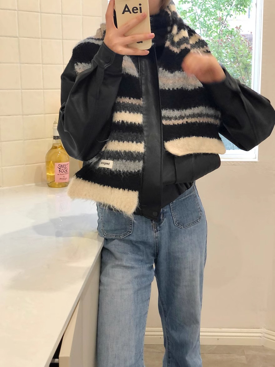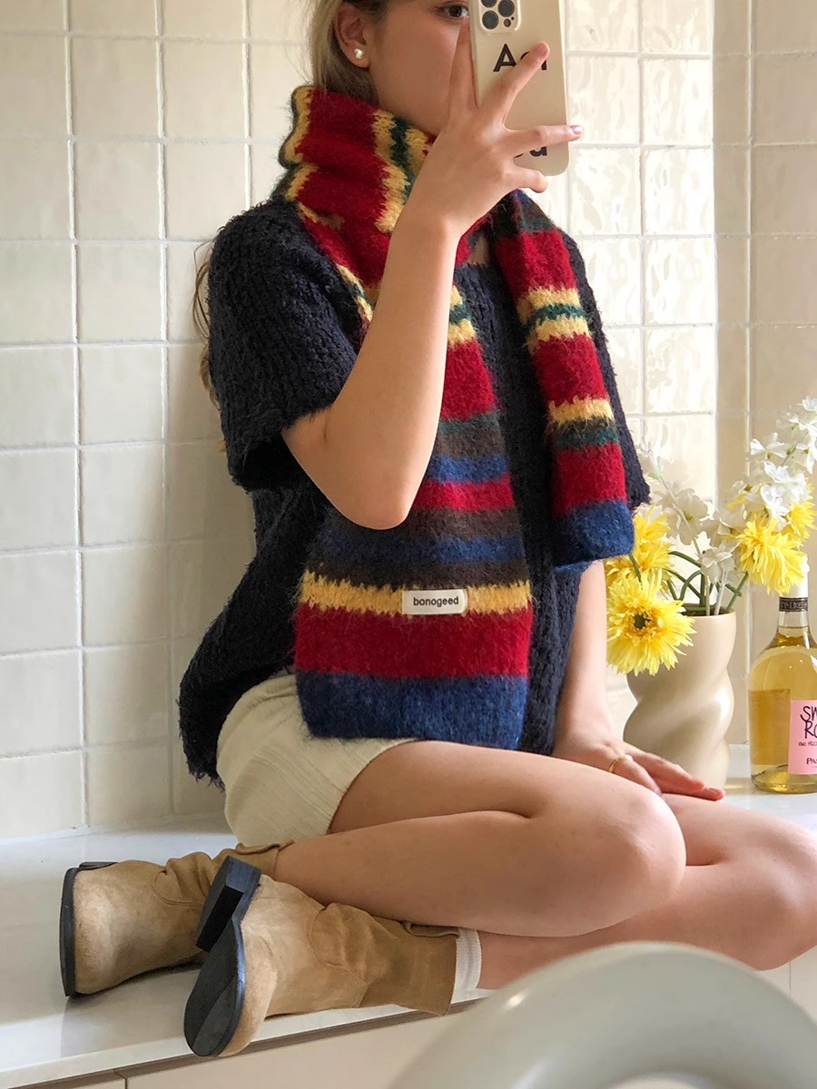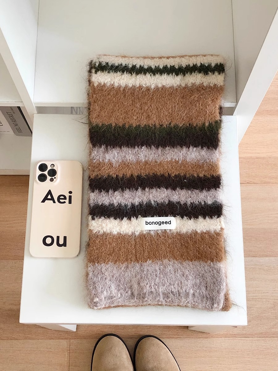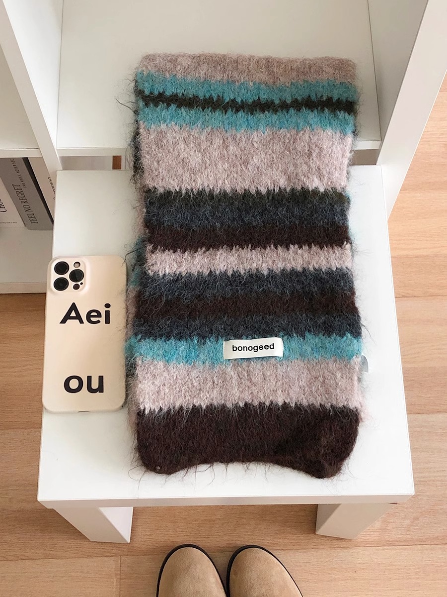 양모 스카프와 함께 여성의 2024 새로운 가을과 겨울 한국 스타일 높은 수준의 분위기 대비 컬러 스카프 목 보호 남성 패션스토어 가기