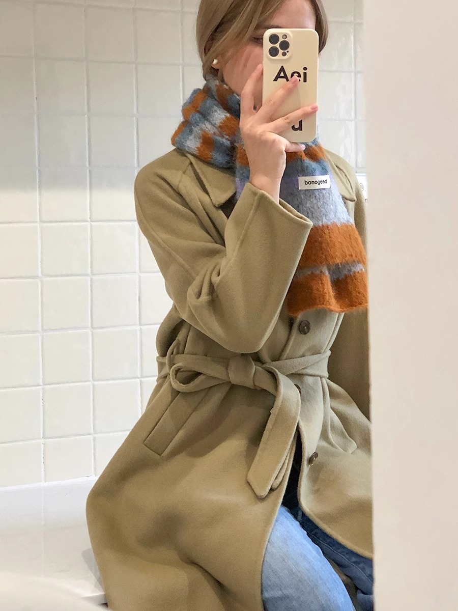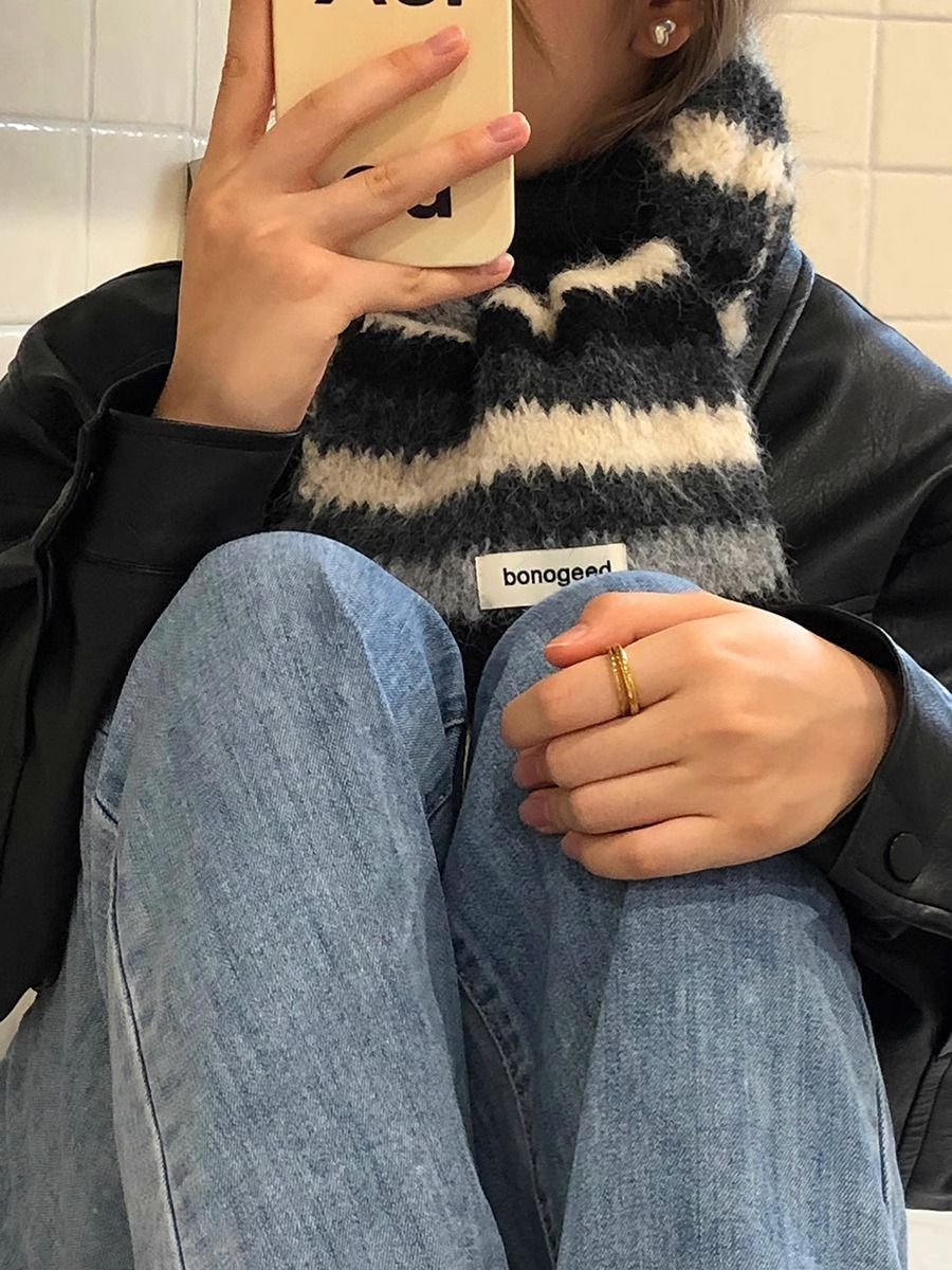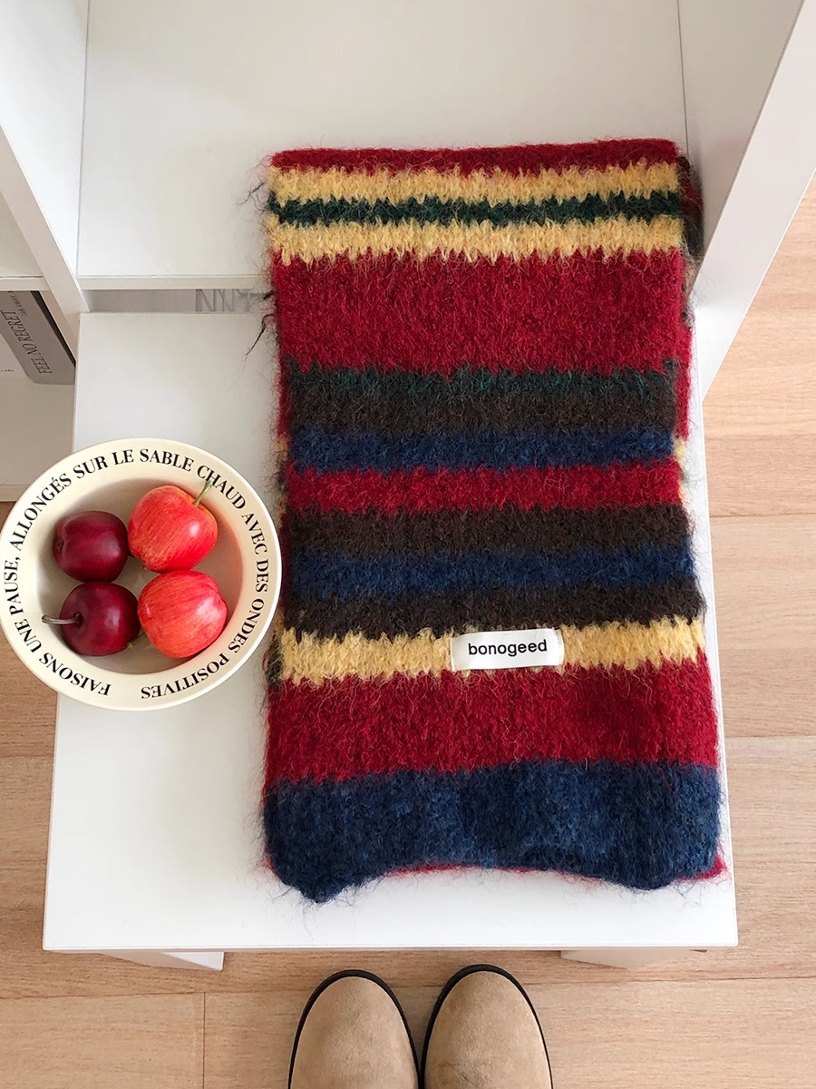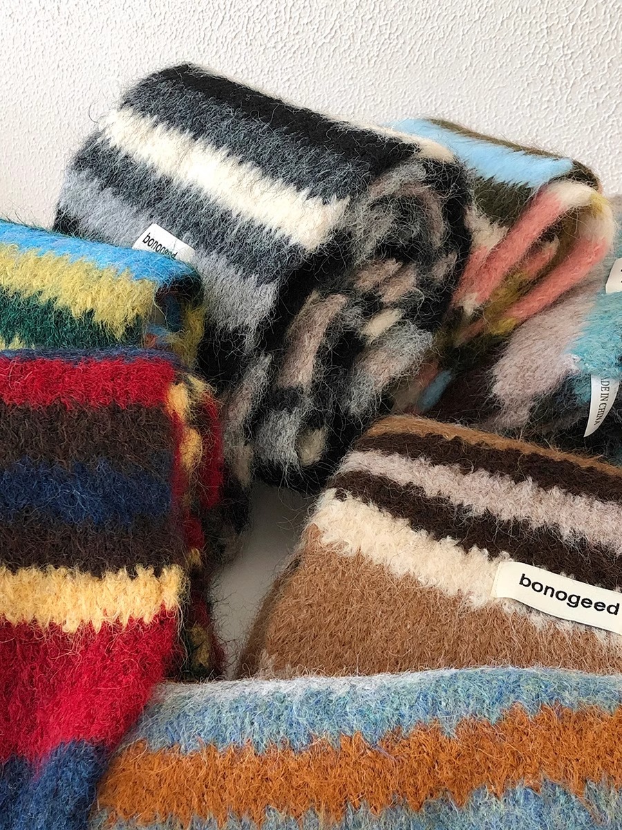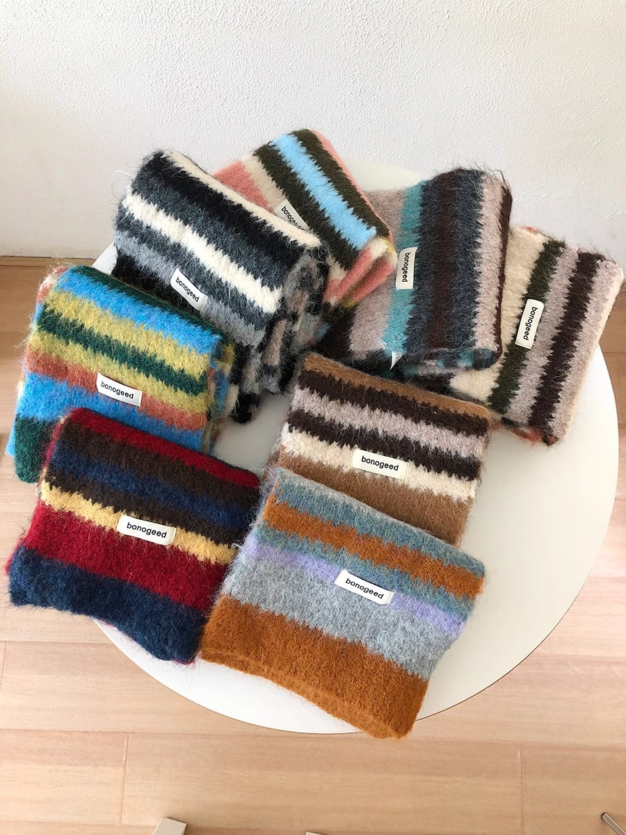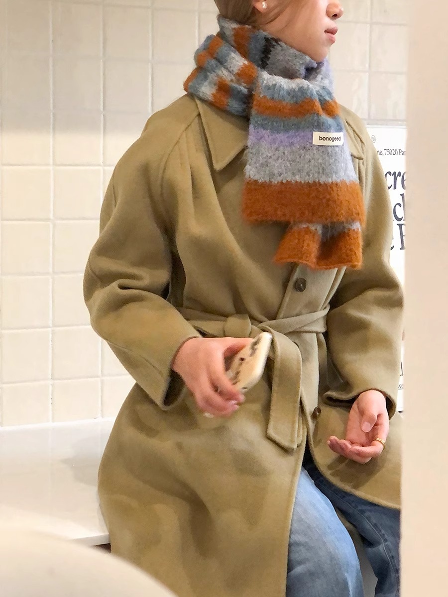 양모 스카프와 함께 여성의 2024 새로운 가을과 겨울 한국 스타일 높은 수준의 분위기 대비 컬러 스카프 목 보호 남성 패션스토어 가기