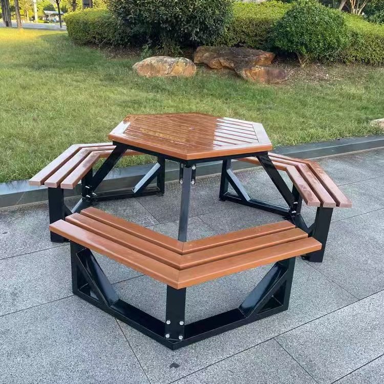 공원 의자 야외 테이블과 의자 조합 직사각형 결합, 조합 육각형 결합 금속 단단한 나무 안뜰 단단한 나무스토어 가기