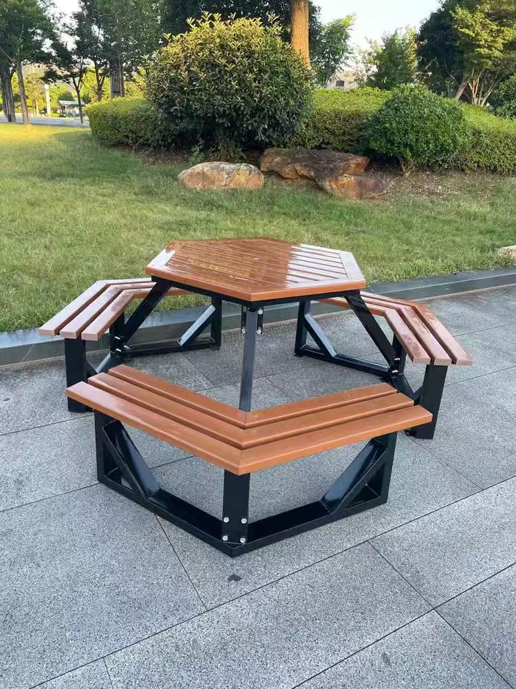 공원 의자 야외 테이블과 의자 조합 직사각형 결합, 조합 육각형 결합 금속 단단한 나무 안뜰 단단한 나무