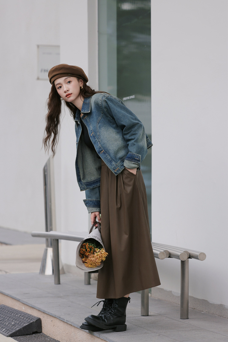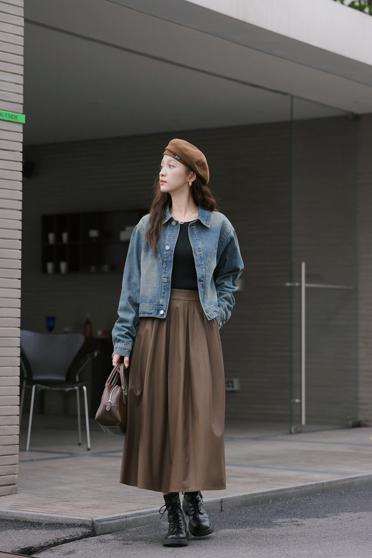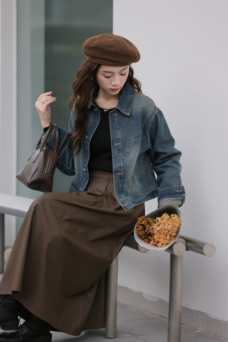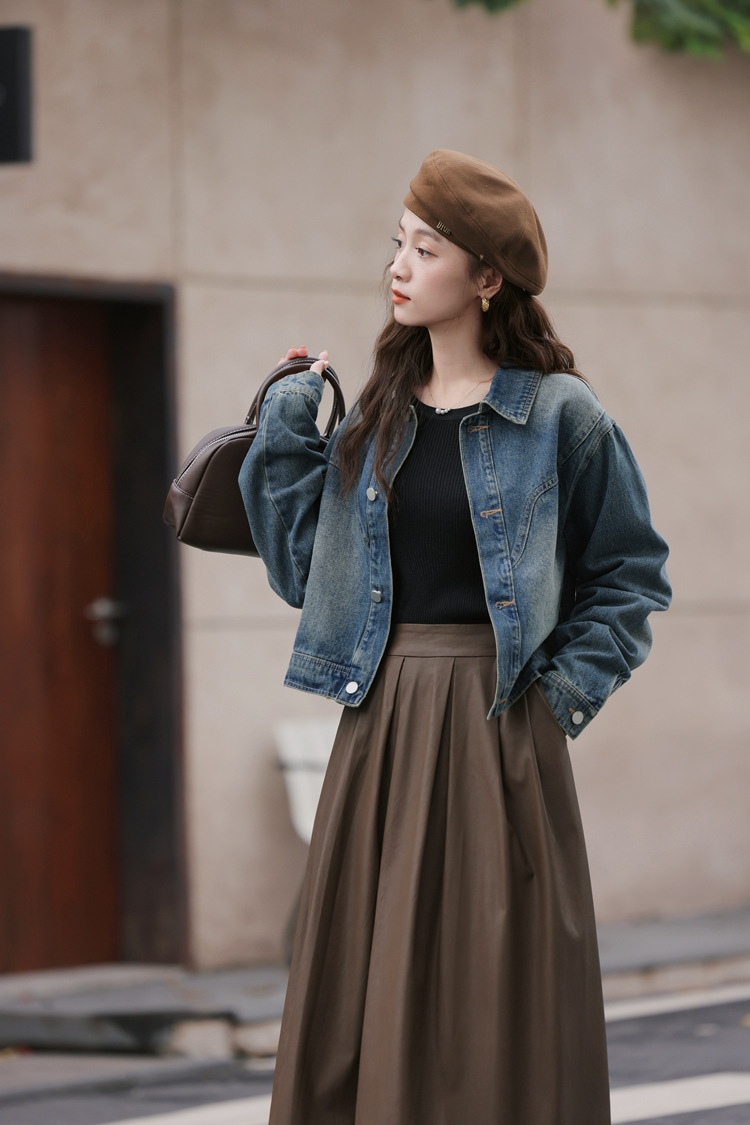 한국 스타일의 빈티지 옷깃 긴 소매 데님 코트 여성의 2024 가을 새로운 짧은 재킷 탑