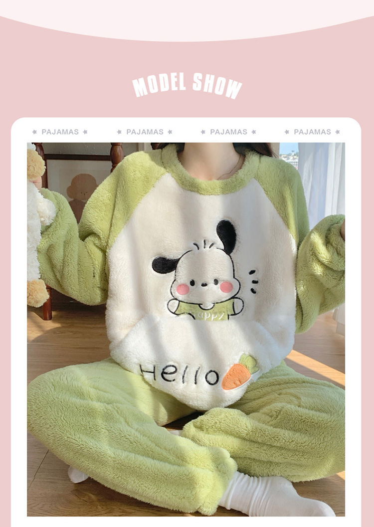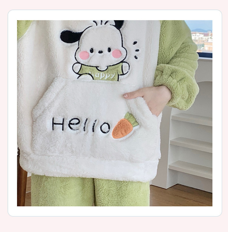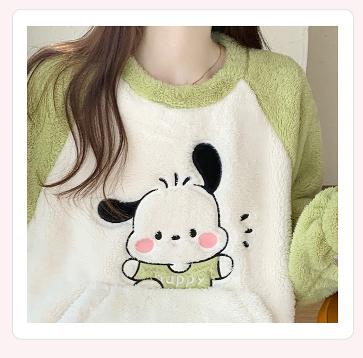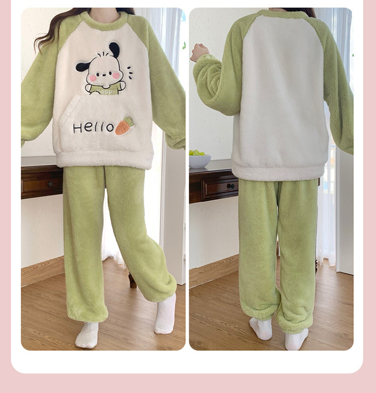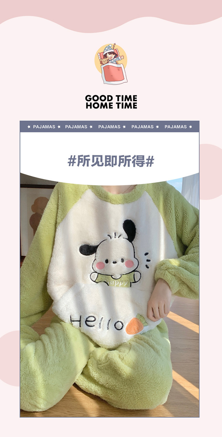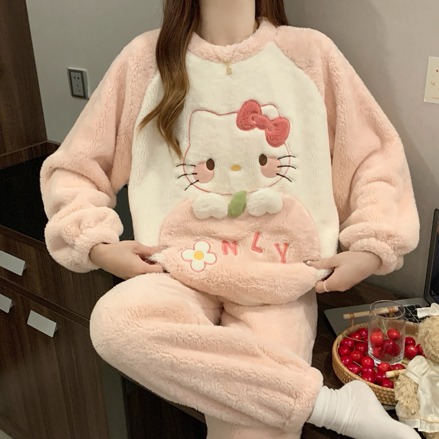 2025년 신상 여성용 잠옷 가을 겨울 귀여운 만화 캐릭터 두꺼운 산호 벨벳 홈웨어 캐주얼 플란넬 세트스토어 가기
