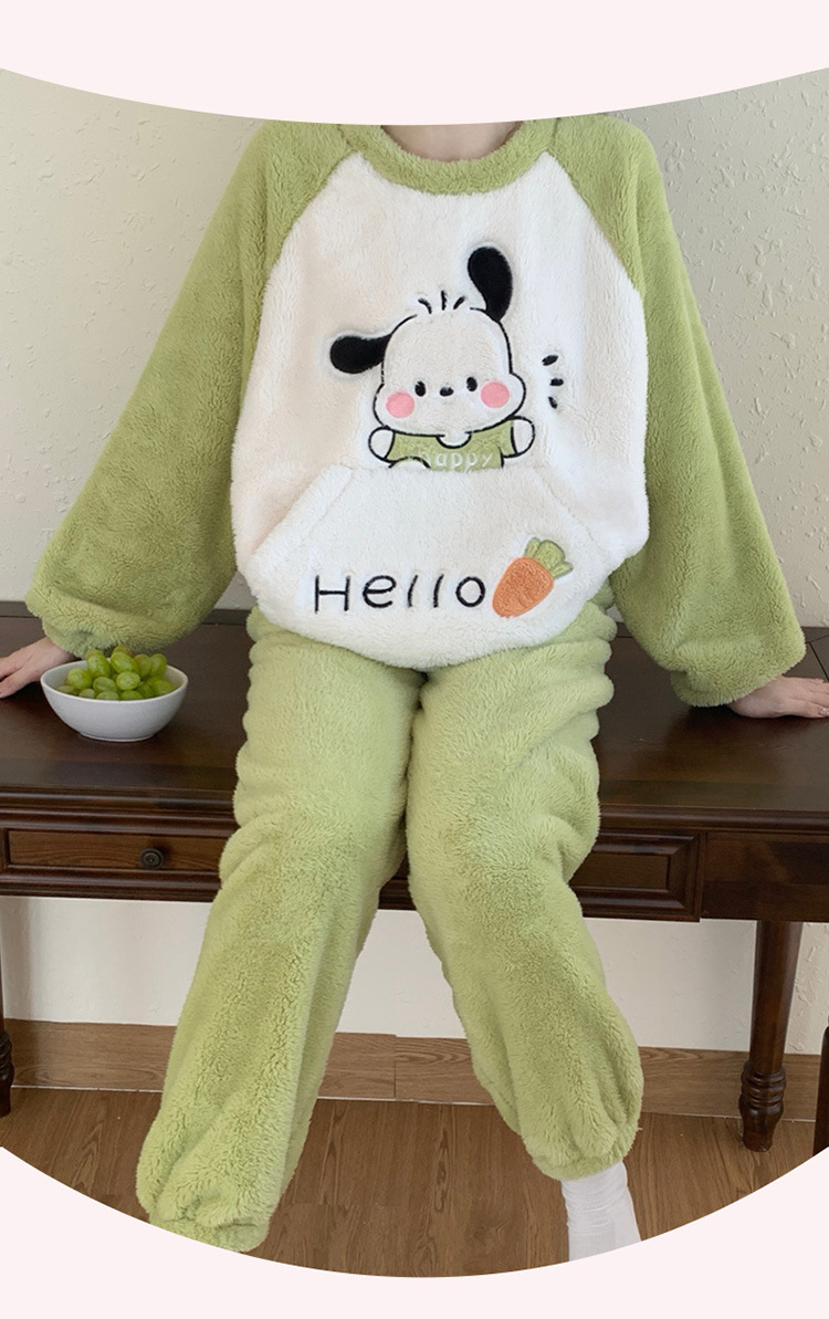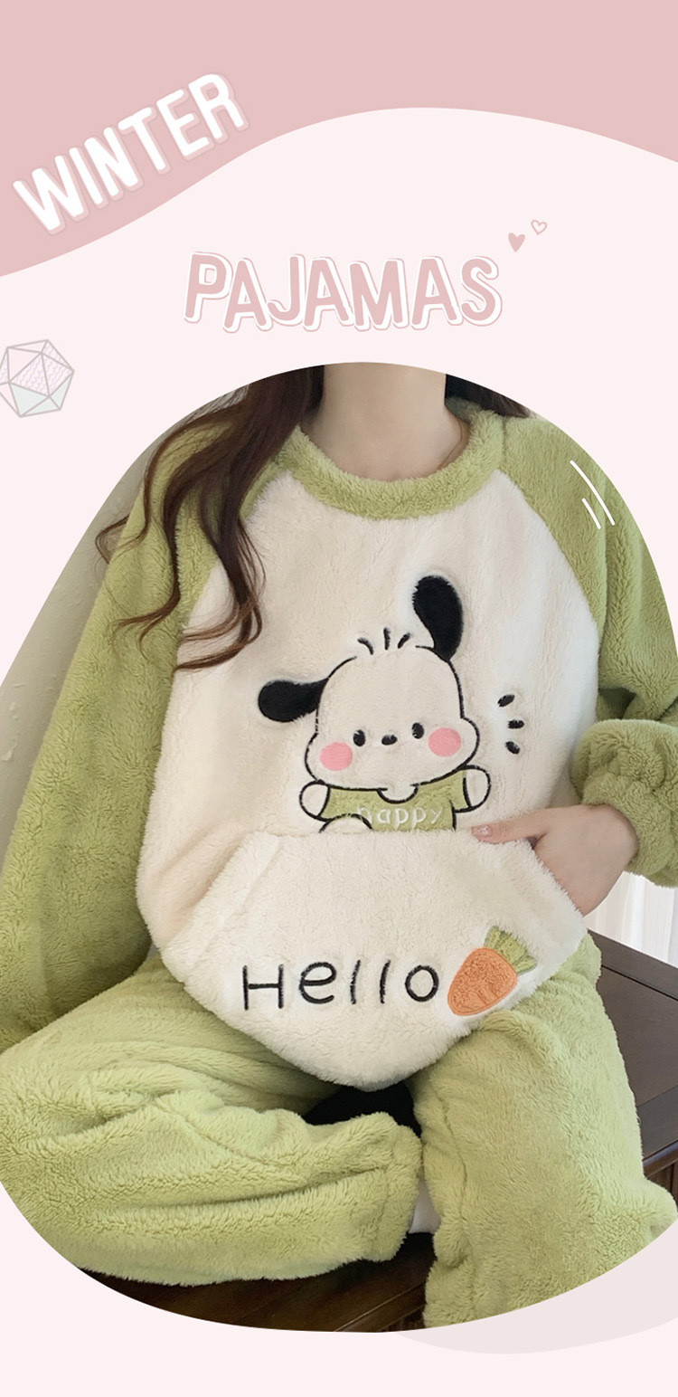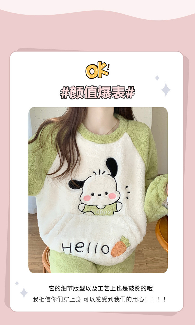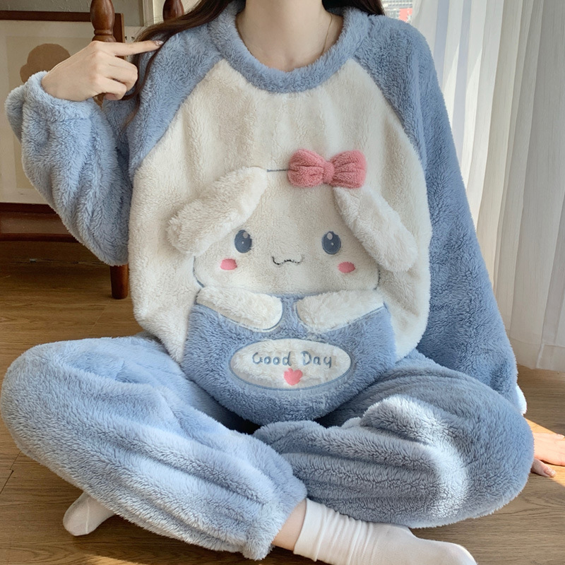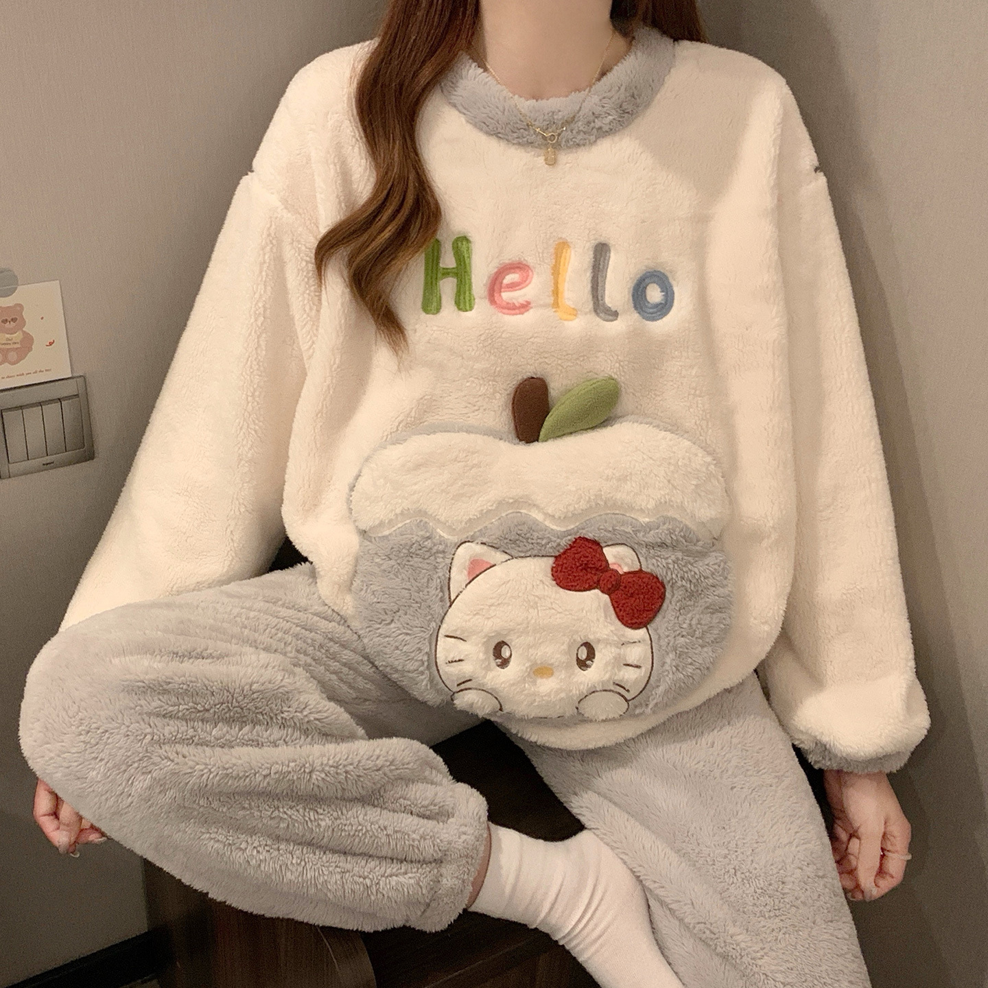 2025년 신상 여성용 잠옷 가을 겨울 귀여운 만화 캐릭터 두꺼운 산호 벨벳 홈웨어 캐주얼 플란넬 세트스토어 가기