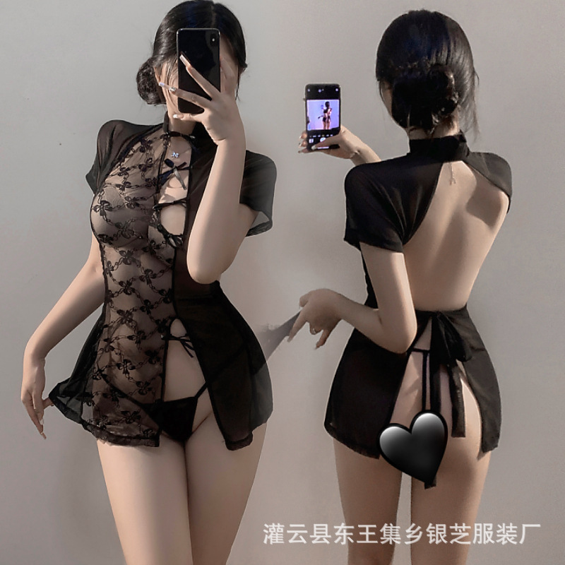 동양 뷰티 섹스 란제리 나이트가운 순수한 욕망 투명한 레이스 청삼 스커트 작은 가슴 큰 열정 겨냥 파자마 여성스토어 가기
