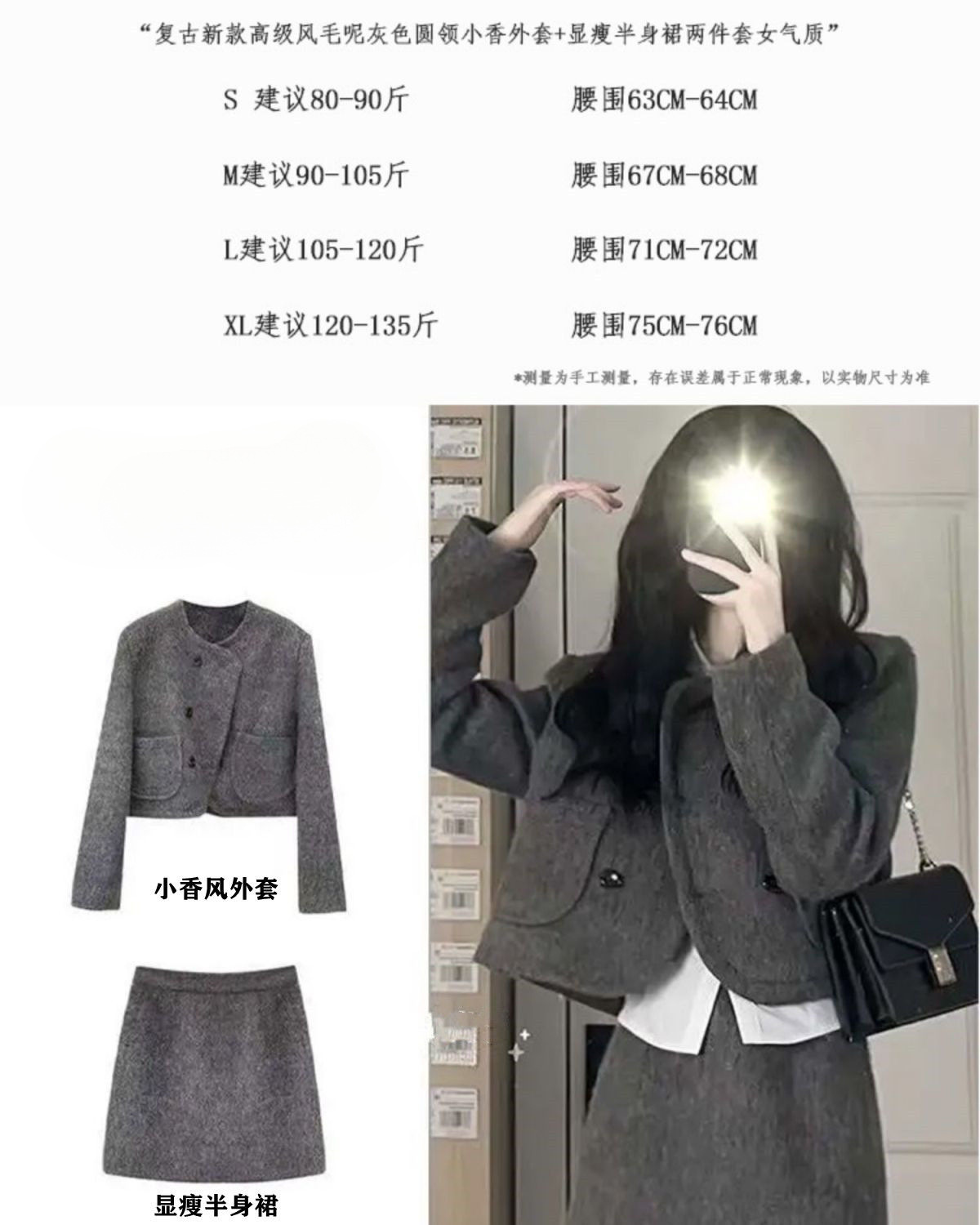 드롭 배송 모직 정장 스커트 새로운 스타일 작은 짧은 코트 여성 스커트 투피스는 트렌디하지 않습니다스토어 가기