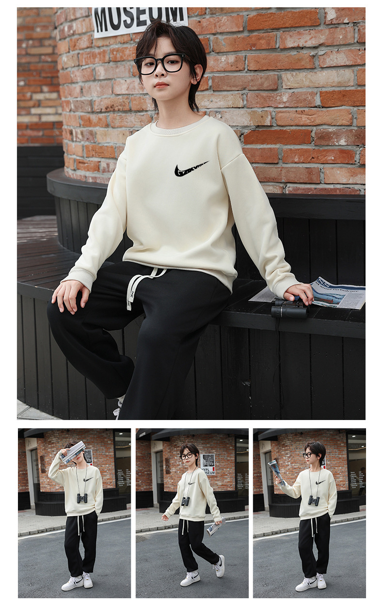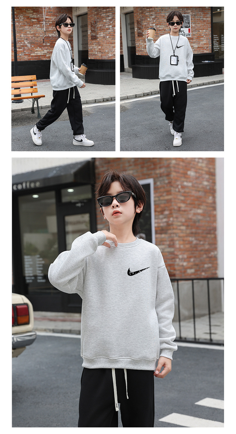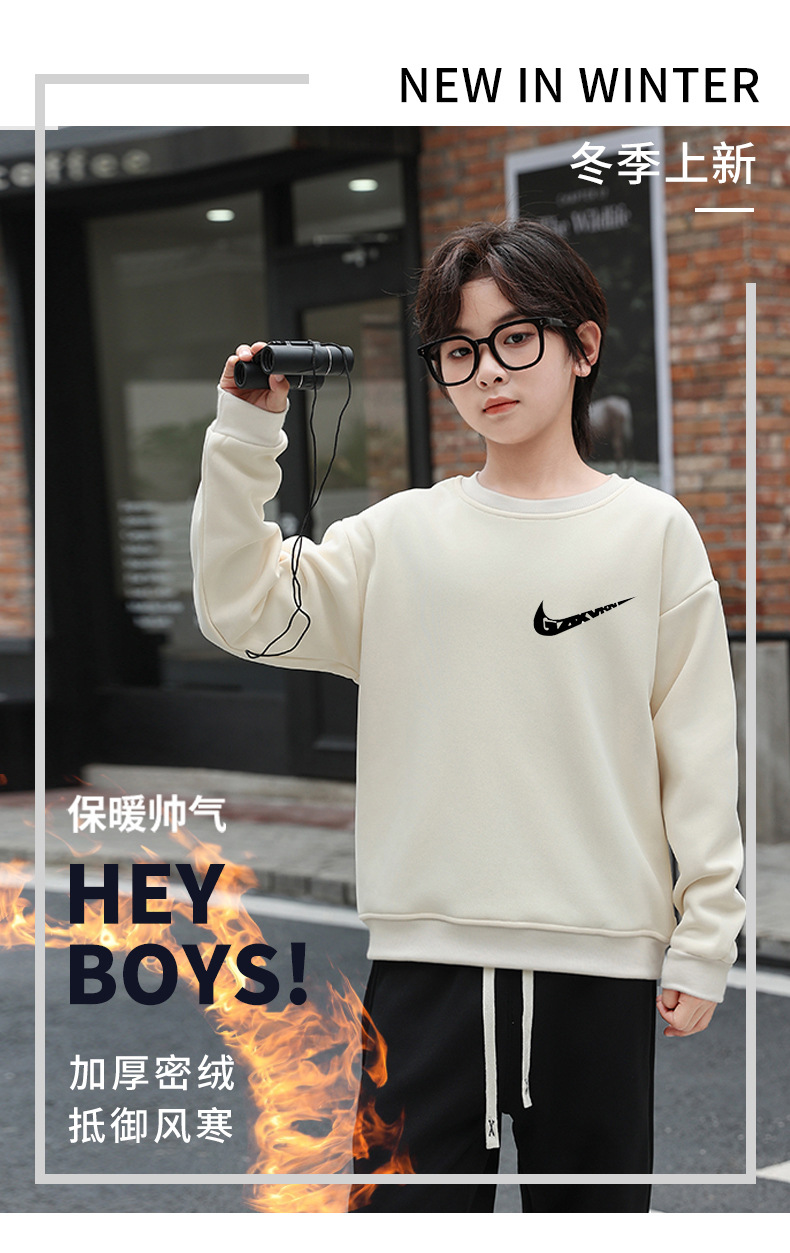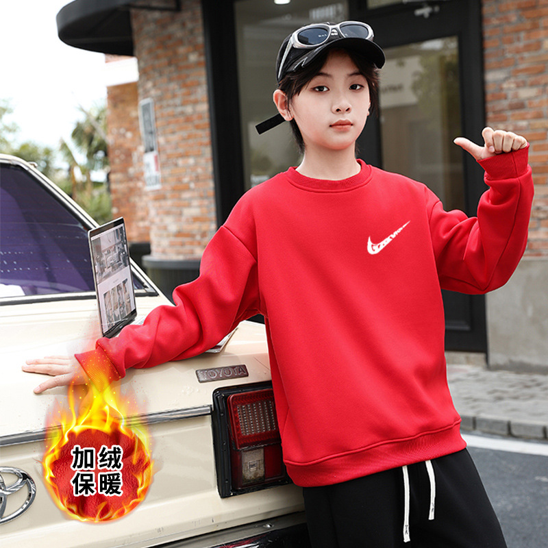유행 소년 기모 두꺼운 스웨터 가을과 겨울 새로운 스타일 중대형 어린이 라운드 넥 탑 느슨한 올매치 아동베이스 셔츠스토어 가기