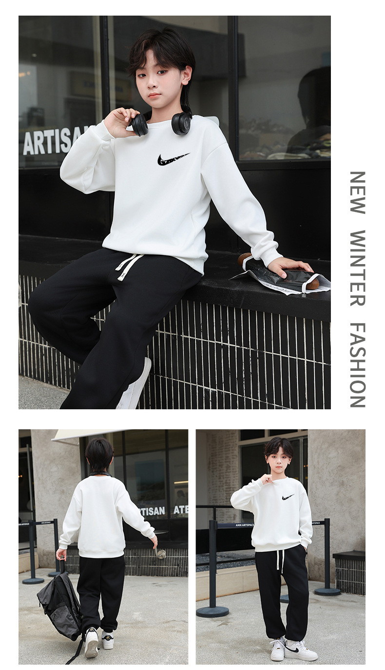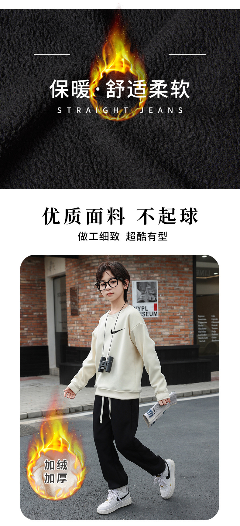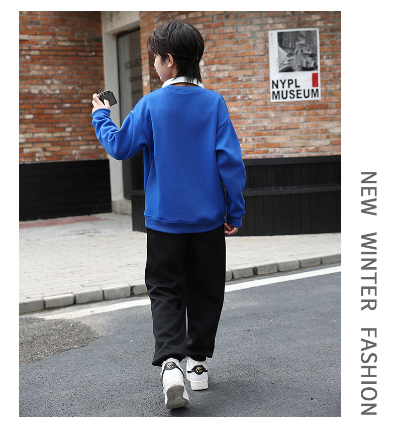 유행 소년 기모 두꺼운 스웨터 가을과 겨울 새로운 스타일 중대형 어린이 라운드 넥 탑 느슨한 올매치 아동베이스 셔츠