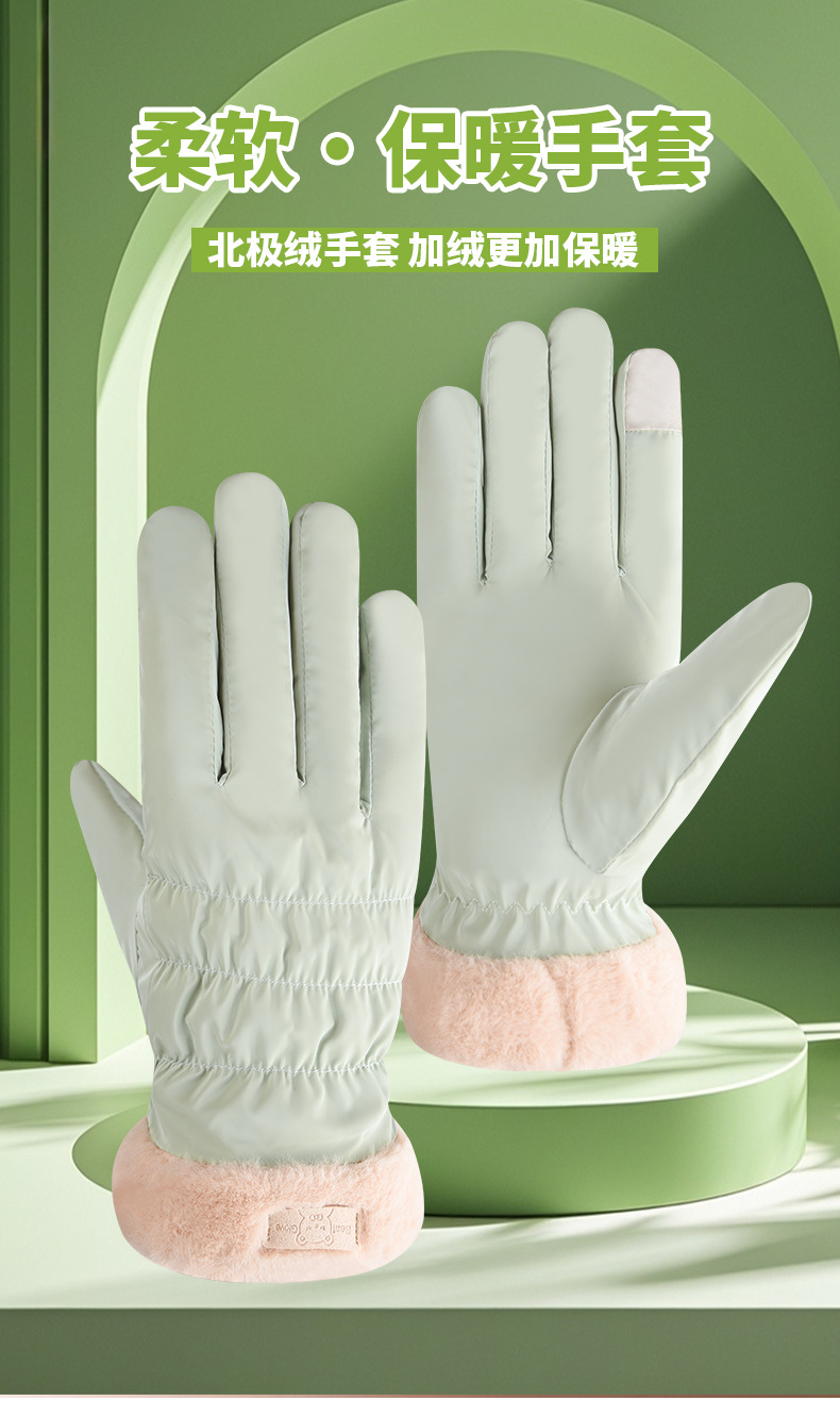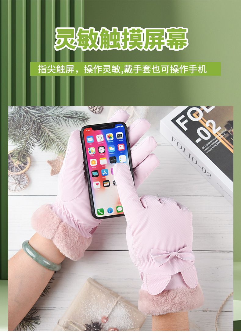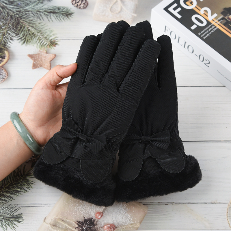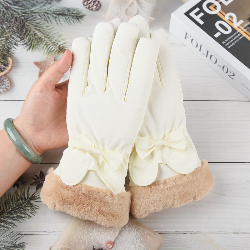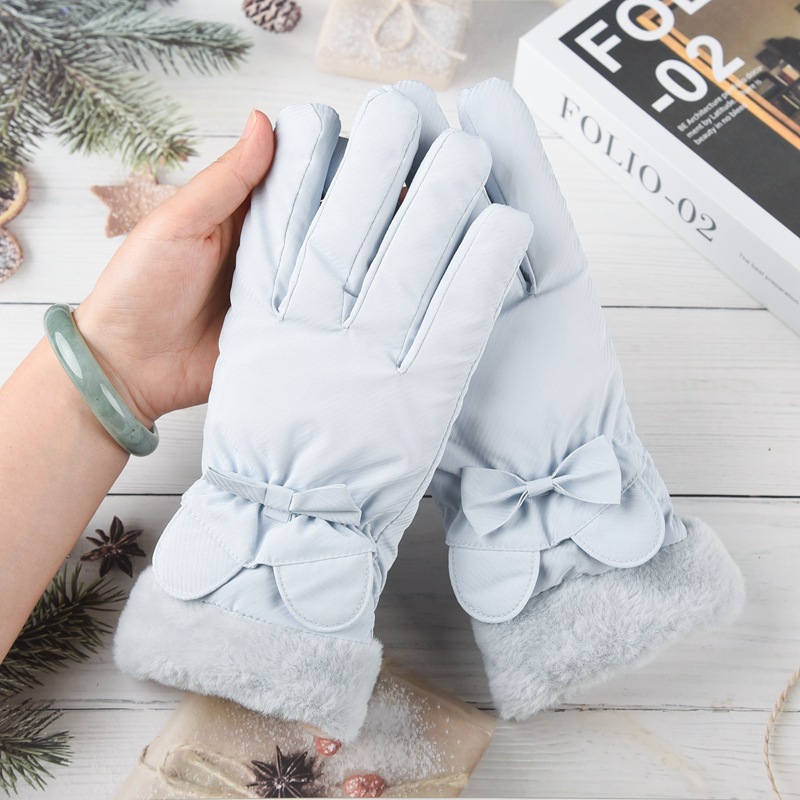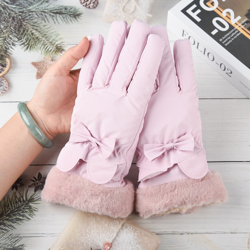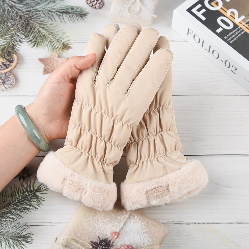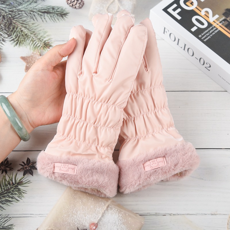 여성용 겨울 피부 느낌 따뜻한 장갑 귀여운 두꺼운 터치 스크린 학생 야외 사이클링 방풍 전기 자동차 기모 냉방