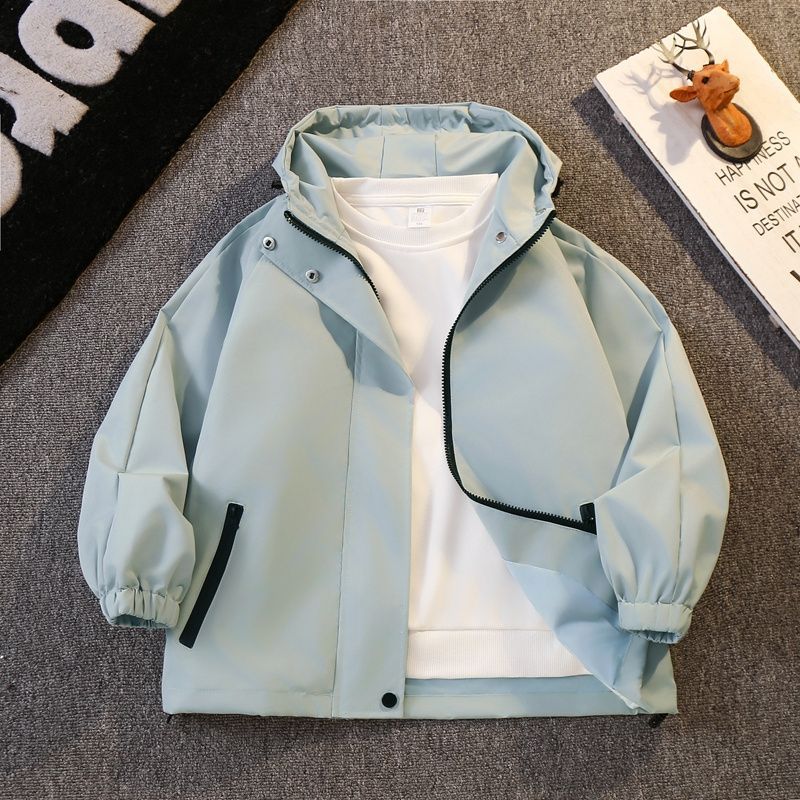 2024 새로운 소녀의 봄과 가을 옷 소녀의 가을 옷 캐주얼 느슨한 방풍 후드 자켓스토어 가기
