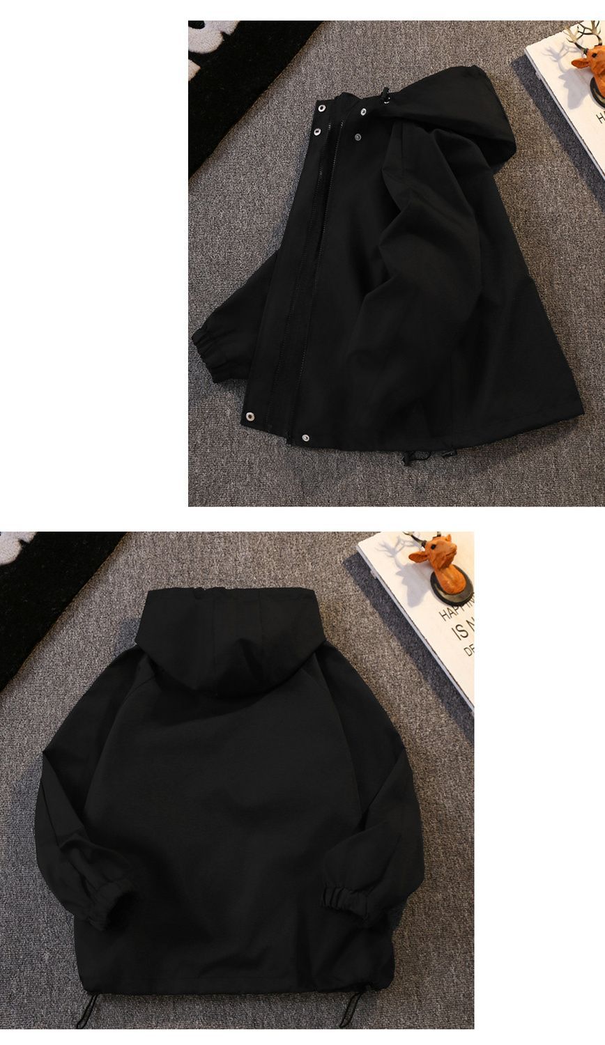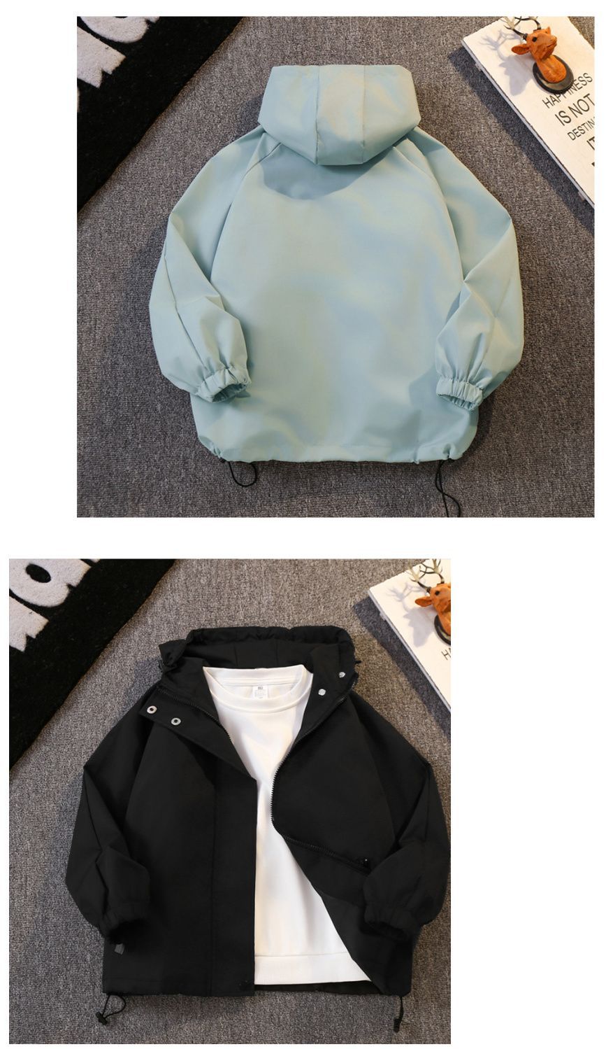 2024 새로운 소녀의 봄과 가을 옷 소녀의 가을 옷 캐주얼 느슨한 방풍 후드 자켓