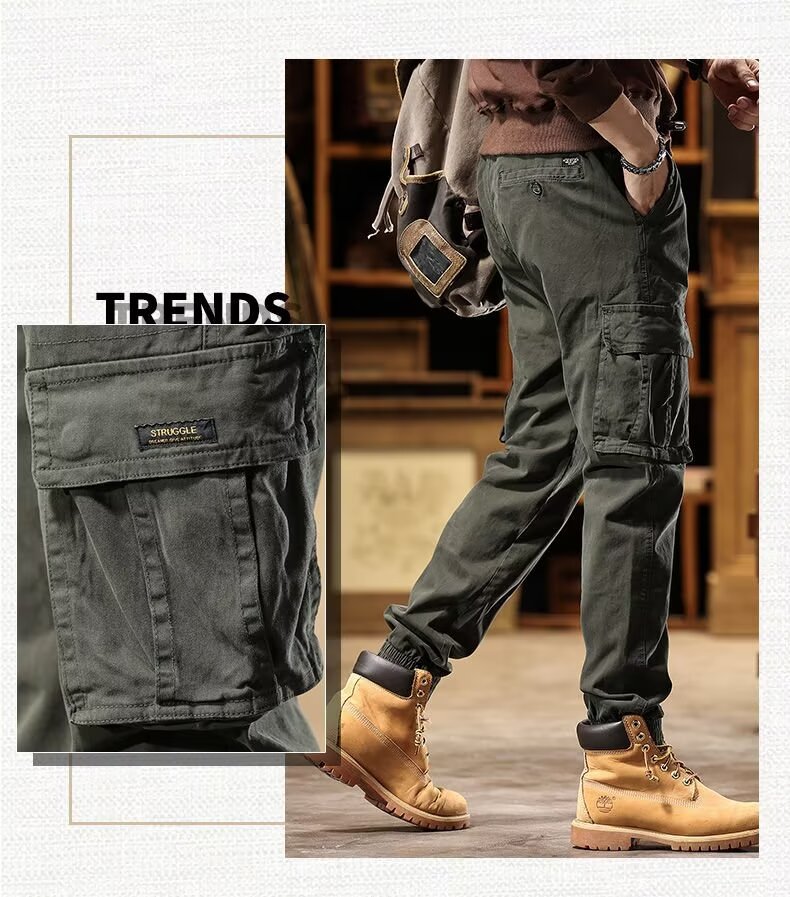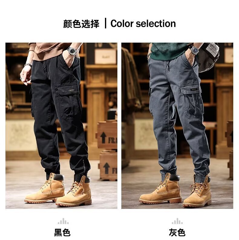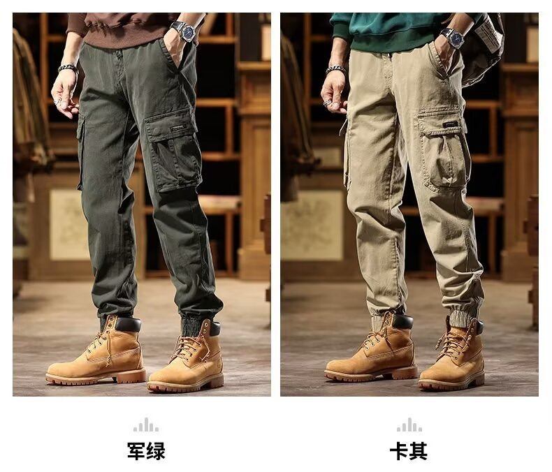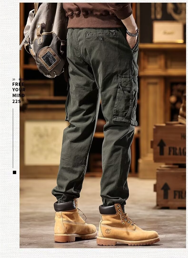 아메리칸 스타일 레트로 레그 툴링 바지 남성용 봄과 가을 패션 브랜드 슬림 핏 다리 바지 남성용 순수한면 착용 방지 작업 바지스토어 가기