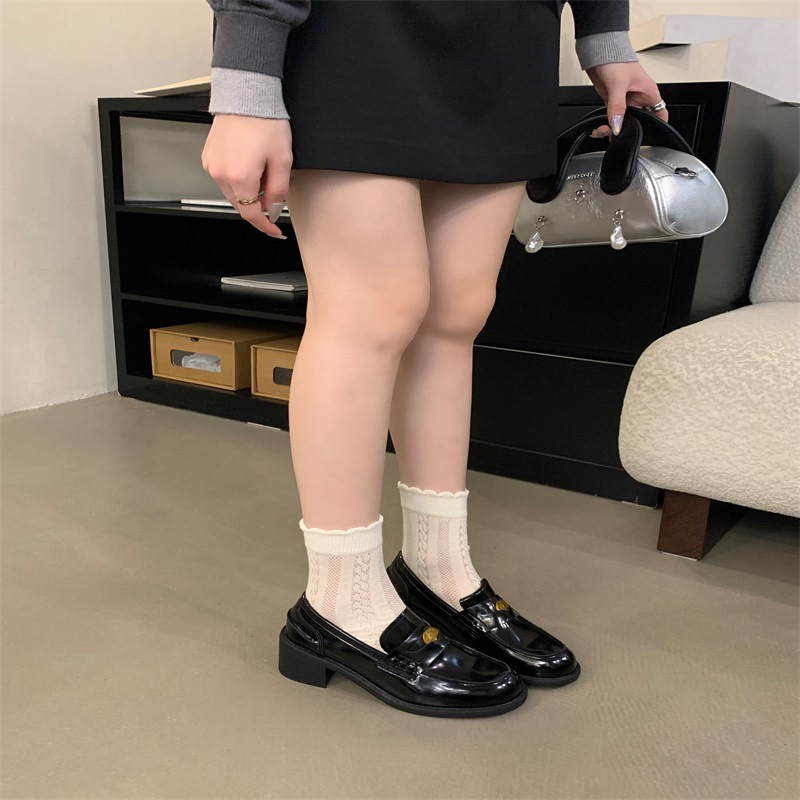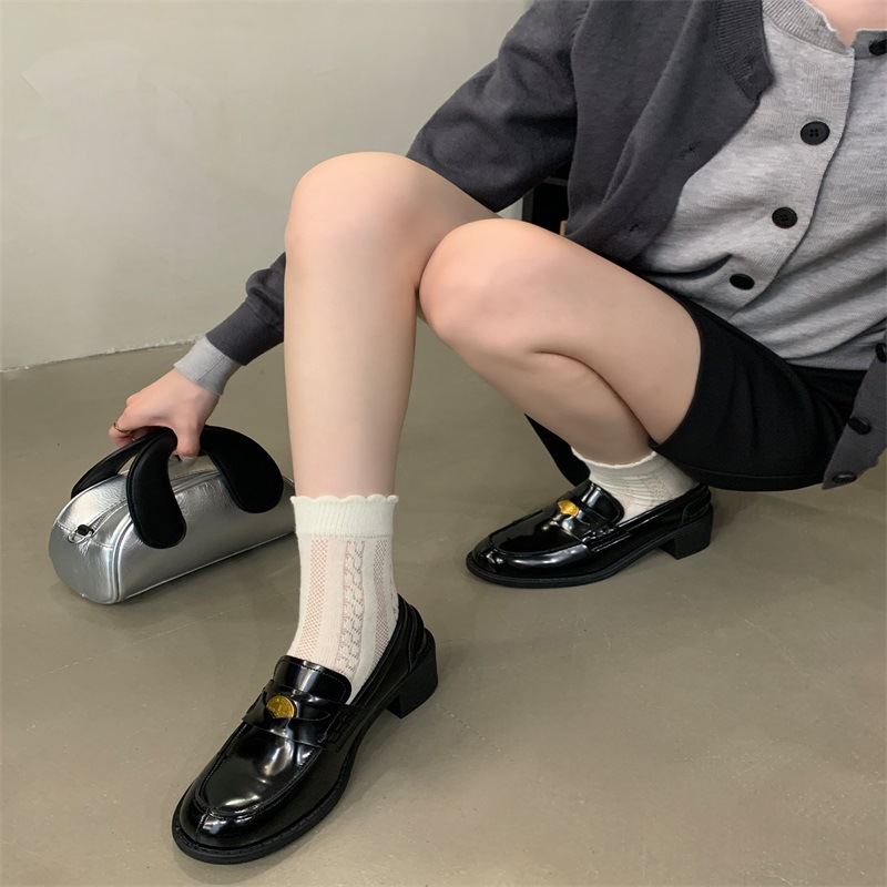 영국 레트로 블랙 Lefu 싱글 레이어 신발 2024 새로운 봄 가을과 겨울 올 매치 스웨이드 프랑스 가죽 신발