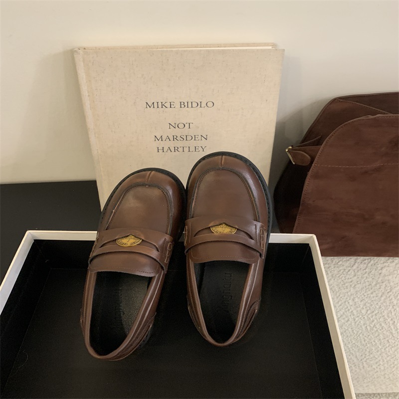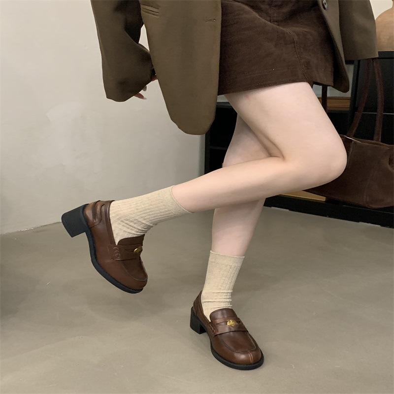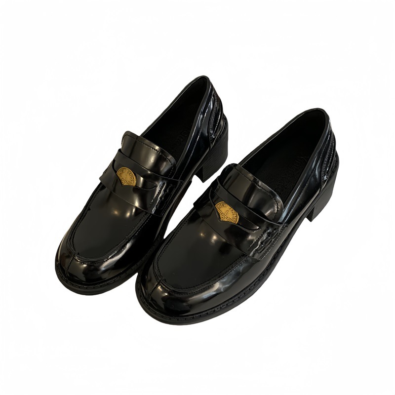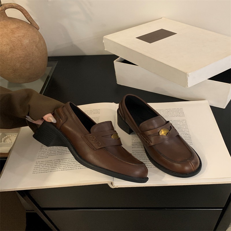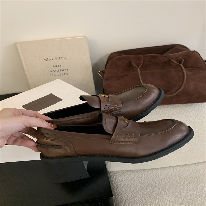 영국 레트로 블랙 Lefu 싱글 레이어 신발 2024 새로운 봄 가을과 겨울 올 매치 스웨이드 프랑스 가죽 신발스토어 가기