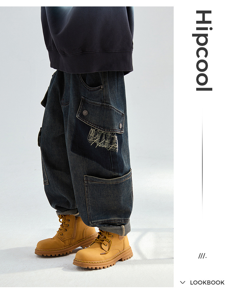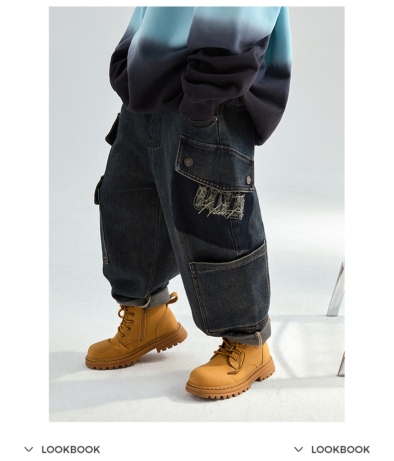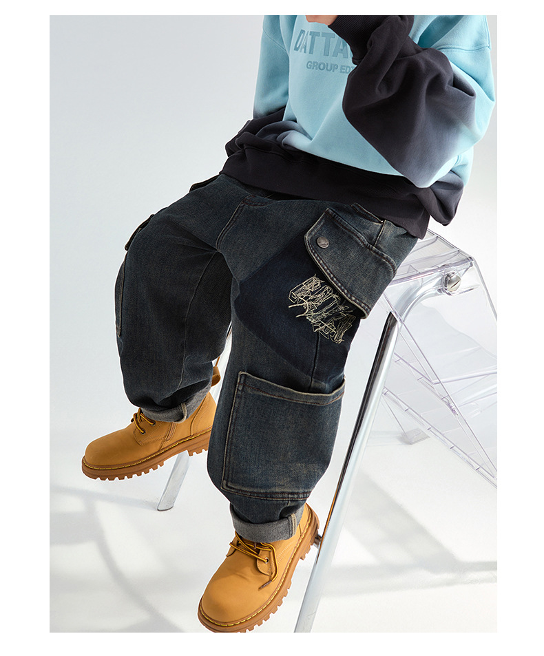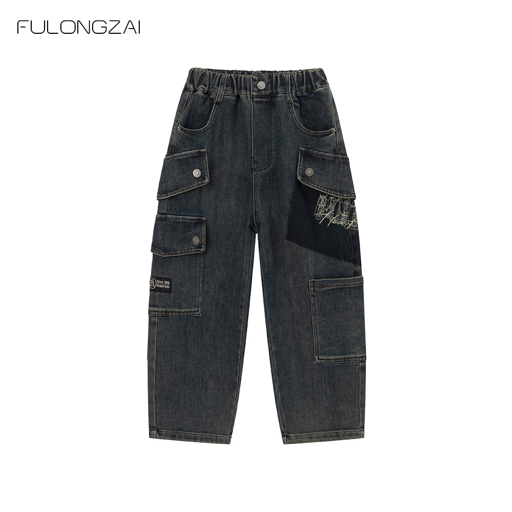 FULONGZAI 부모-어린이 아동복 2024 가을 및 겨울 소년과 소녀 새로운 어린이 툴링 청바지