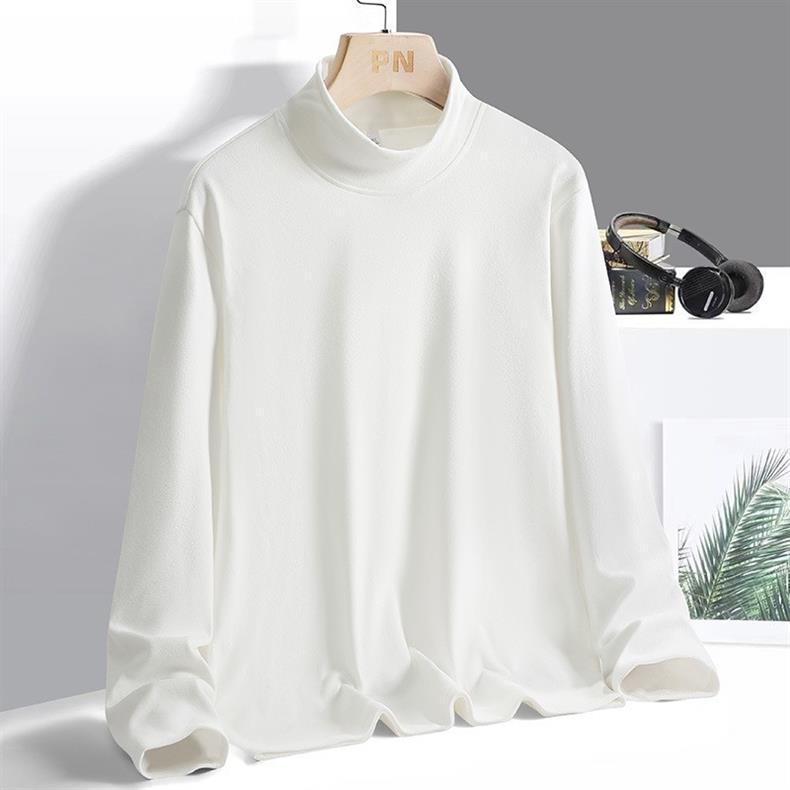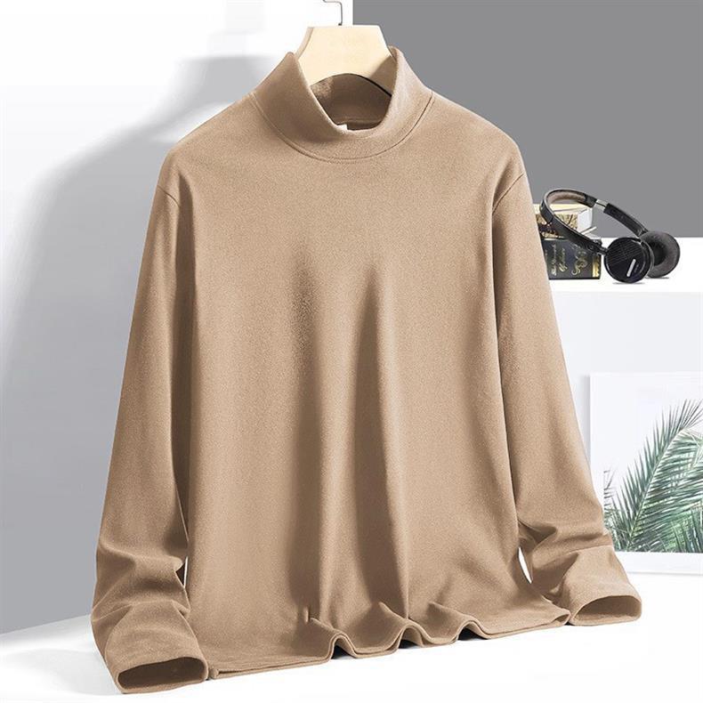 겨울 반 높이 칼라 긴팔 티셔츠 남성용 느슨한 내부 양털 탑 단색 캐주얼 양털베이스 셔츠 가을 옷