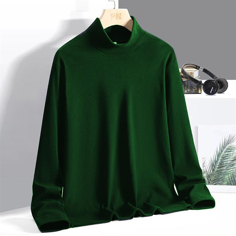 겨울 반 높이 칼라 긴팔 티셔츠 남성용 느슨한 내부 양털 탑 단색 캐주얼 양털베이스 셔츠 가을 옷스토어 가기