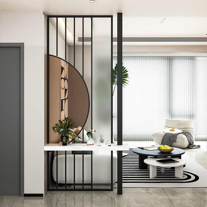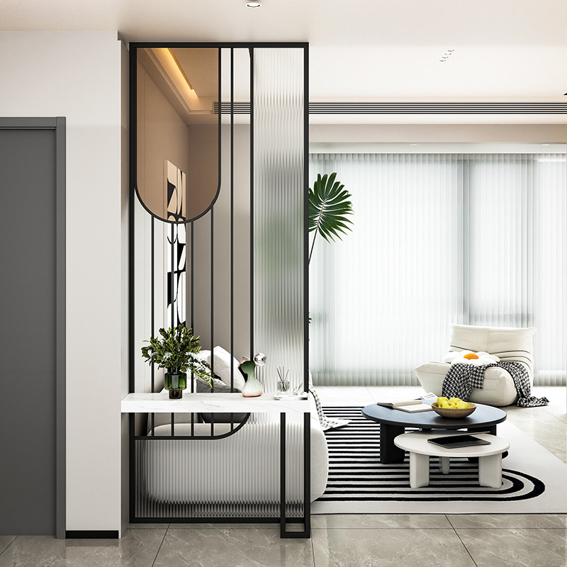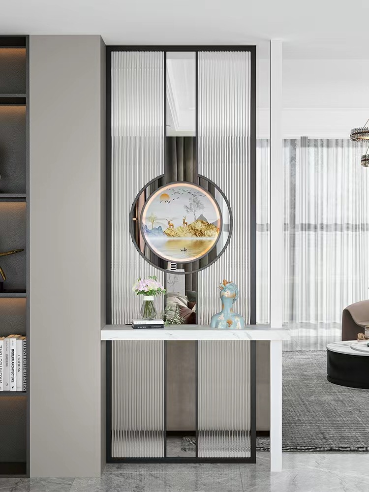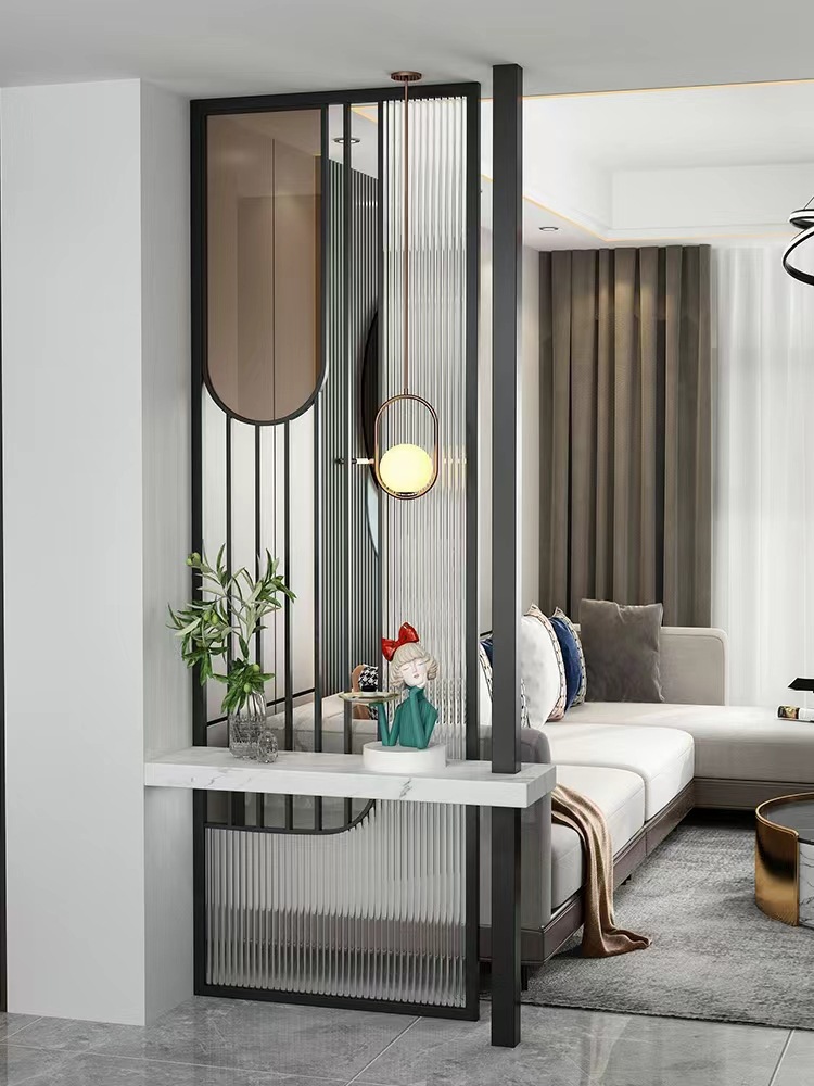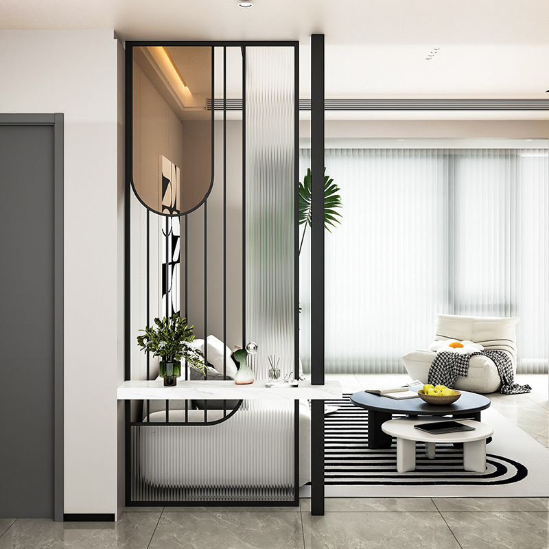엔트리 럭셔리 거실 간단한 현대 입구 캐비닛 유리 스크린 욕실 문-문 음영 스테인레스 스틸 파티션