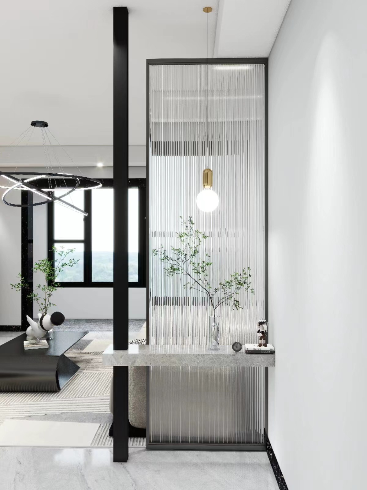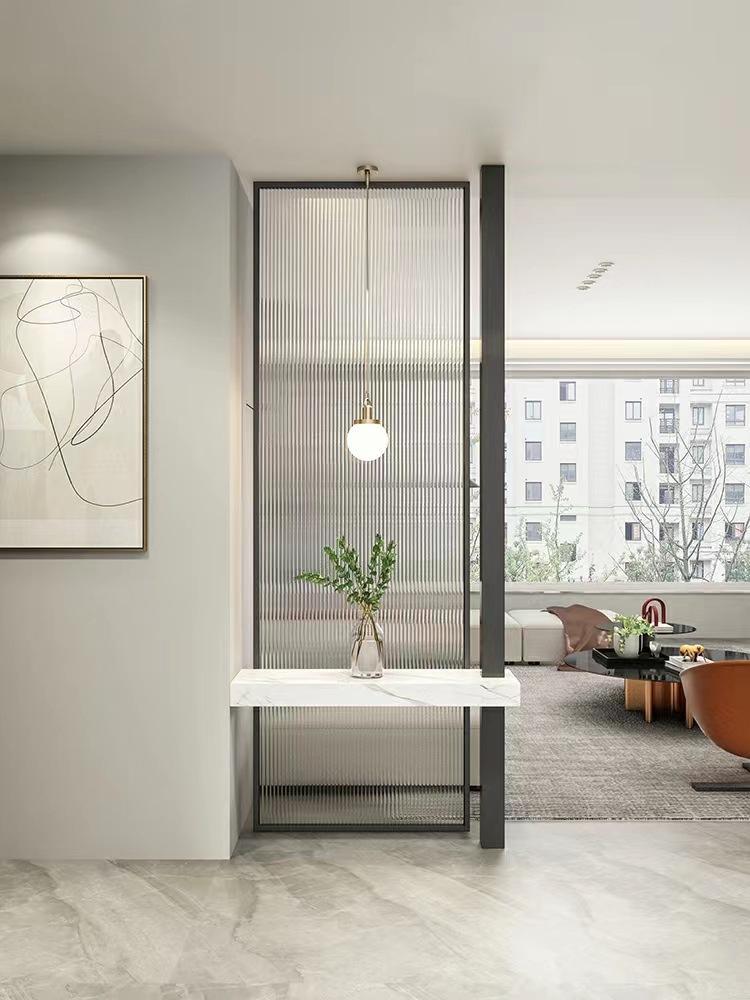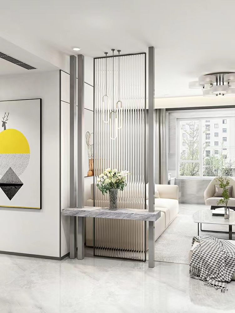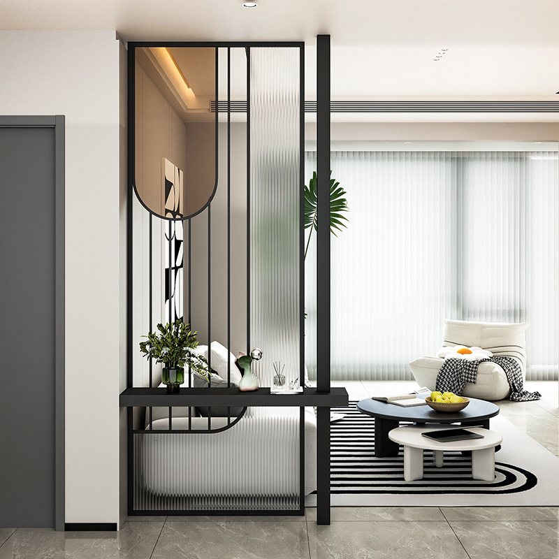 엔트리 럭셔리 거실 간단한 현대 입구 캐비닛 유리 스크린 욕실 문-문 음영 스테인레스 스틸 파티션