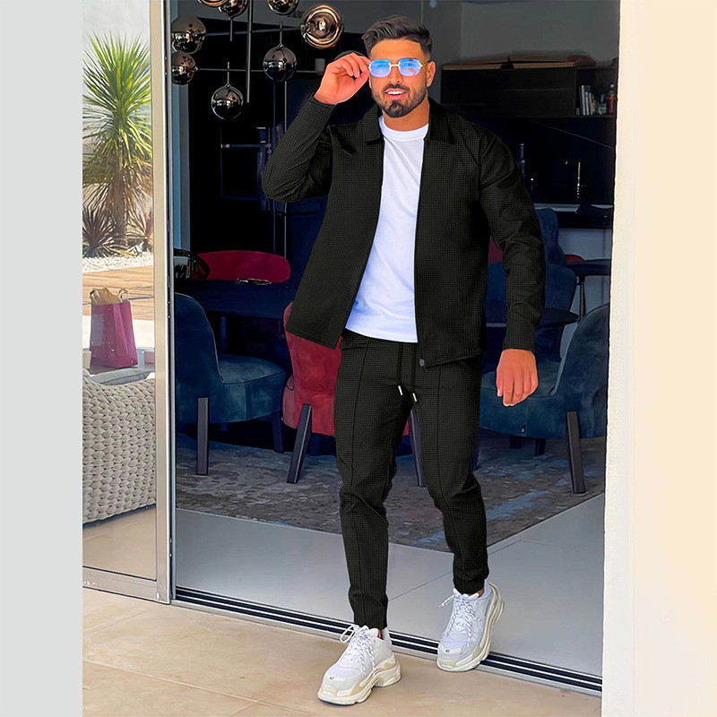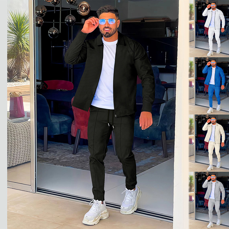 2025 대외 무역 가을 남성 신작 와플 긴팔 라펠 슈트 패션 지퍼 카디건 캐주얼 스포츠 슈트