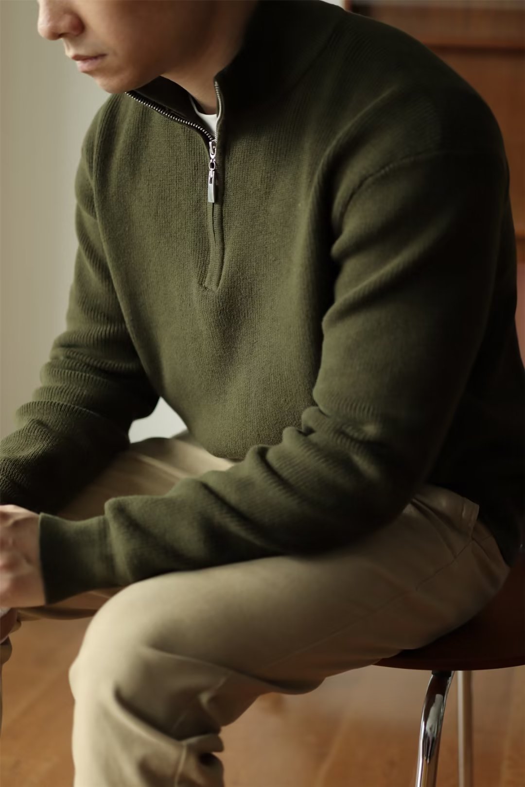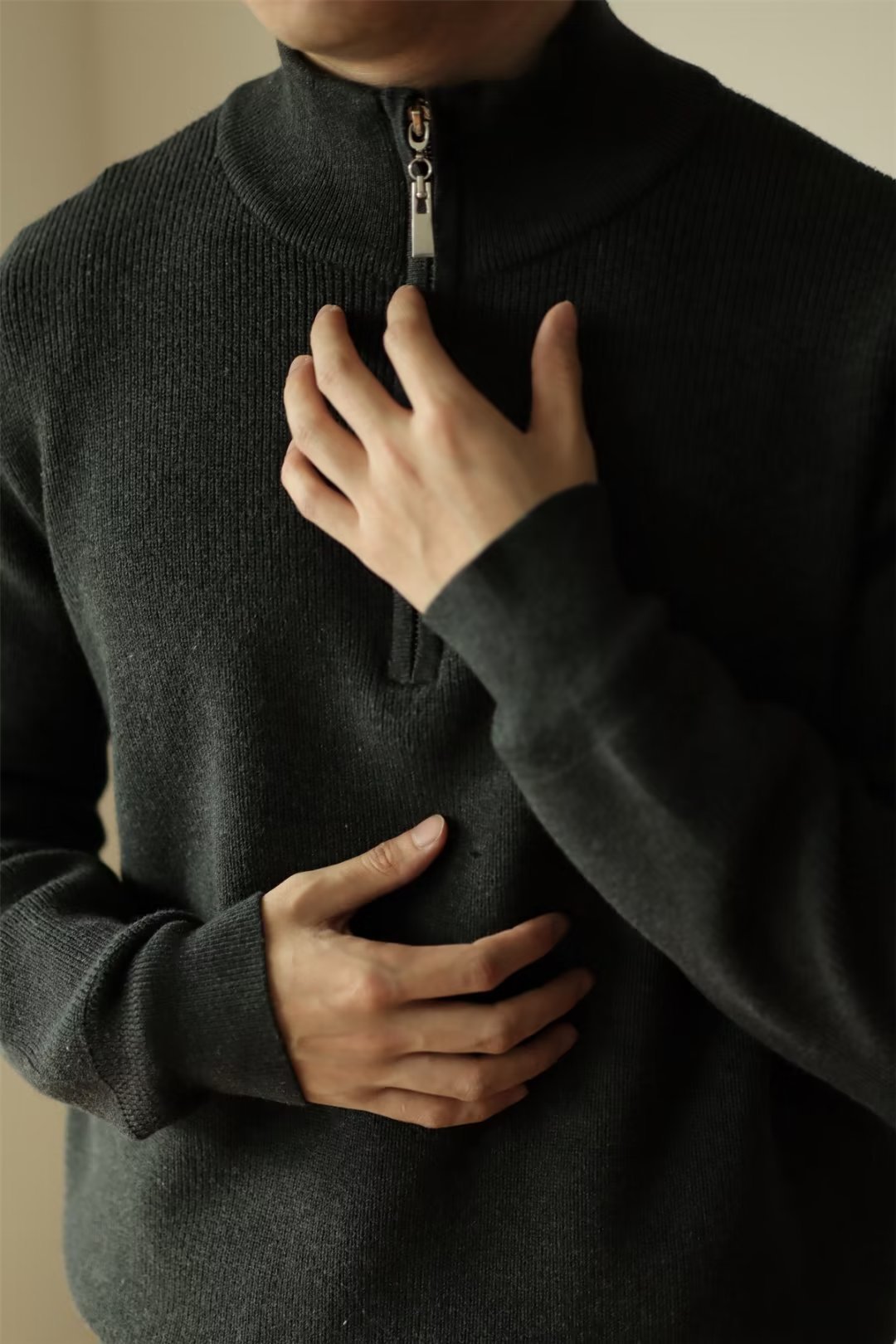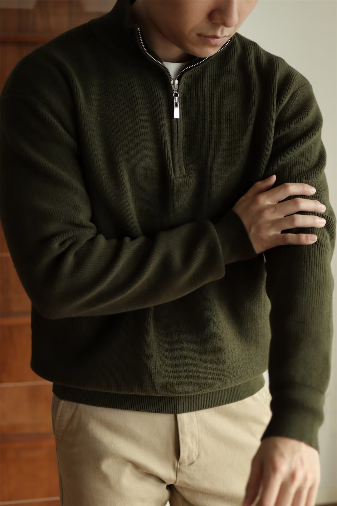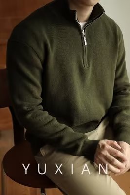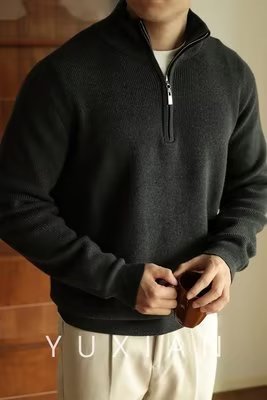 2024 독립 역 아마존 새로운 겨울 긴 소매 V-Neck 니트 스웨터 남성 캐주얼 탑 폴로 셔츠 지퍼