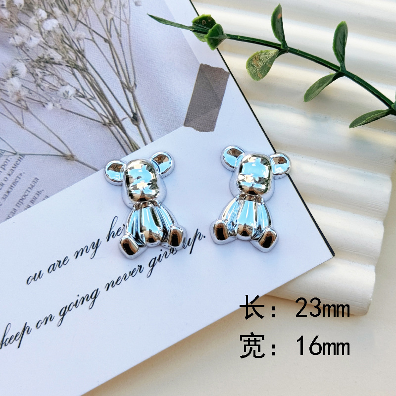 실버 폭력적인 곰 사랑 아크릴 diy 액세서리 휴대 전화 케이스 구멍 신발 패치 머리핀 헤어 액세서리 소재