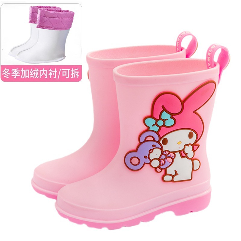 산리오 귀여운 어린이 장화 어린이 미끄럼 방지 야외 소녀 비 신발 쿨로 미 패션 오버 슈즈 도매스토어 가기