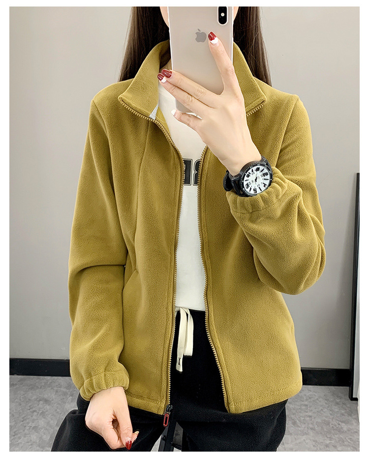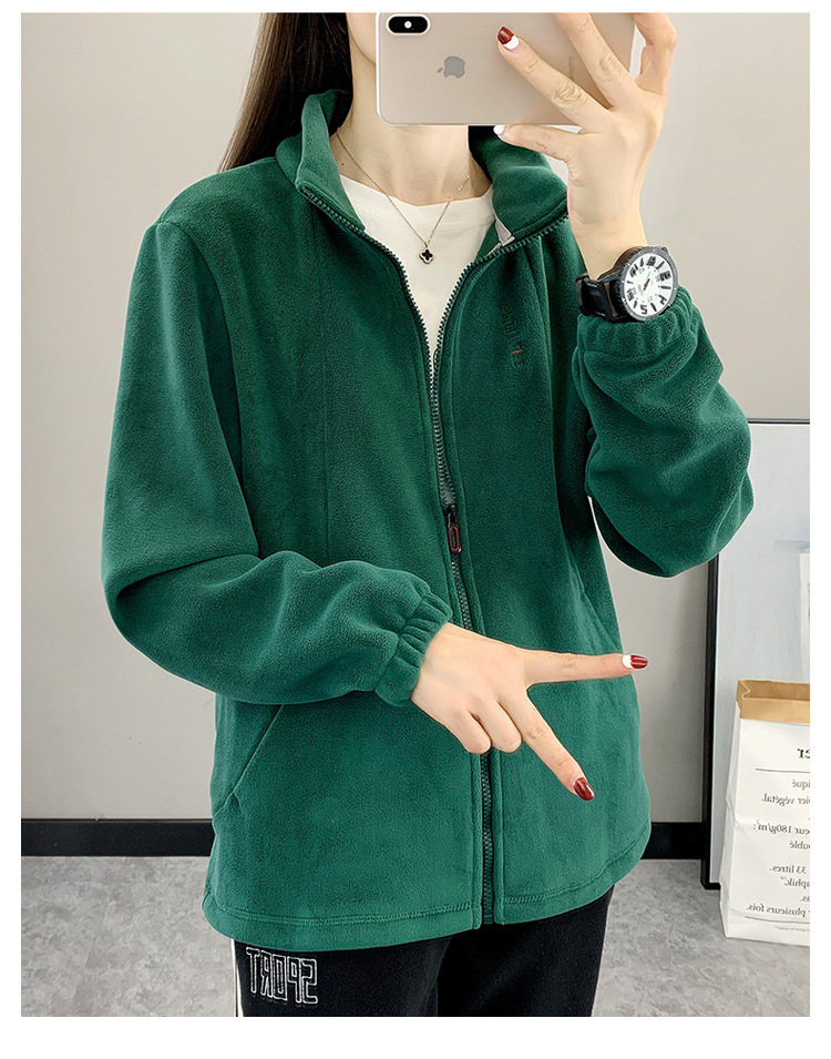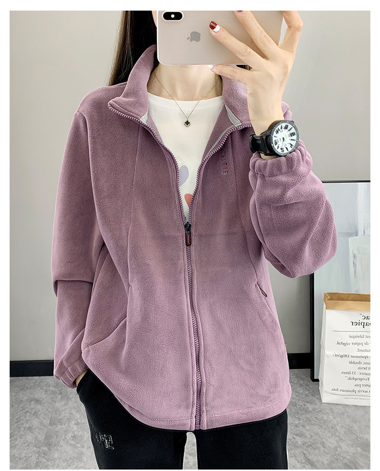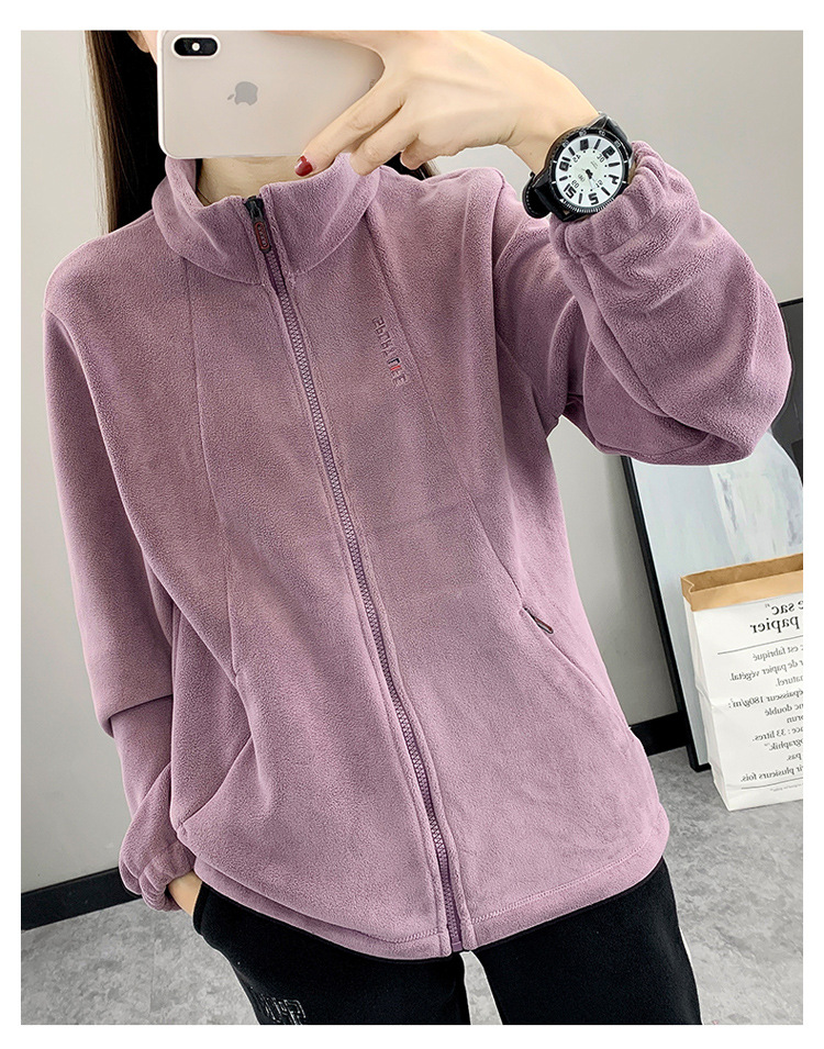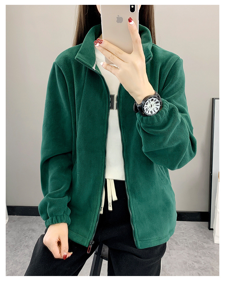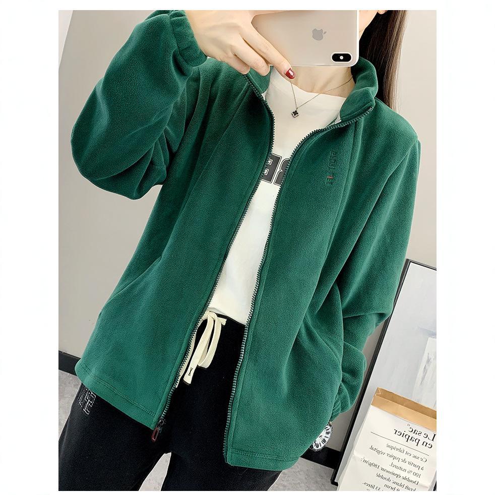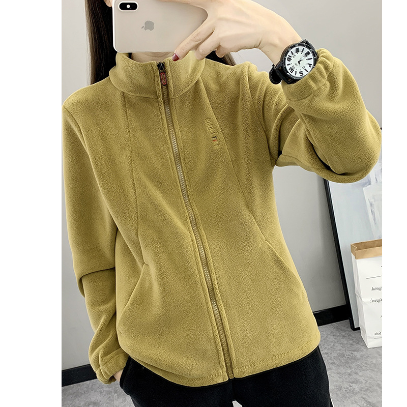 야외 양털 옷 여성용 양면 양털 가을과 겨울 기모 두꺼운 따뜻한 재킷 단색 양털 통기성 지퍼 카디건스토어 가기