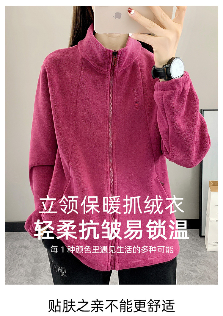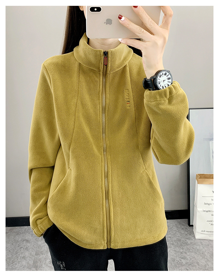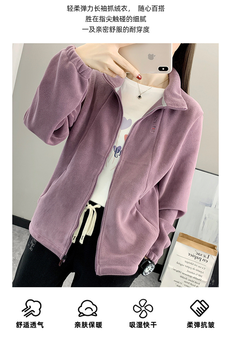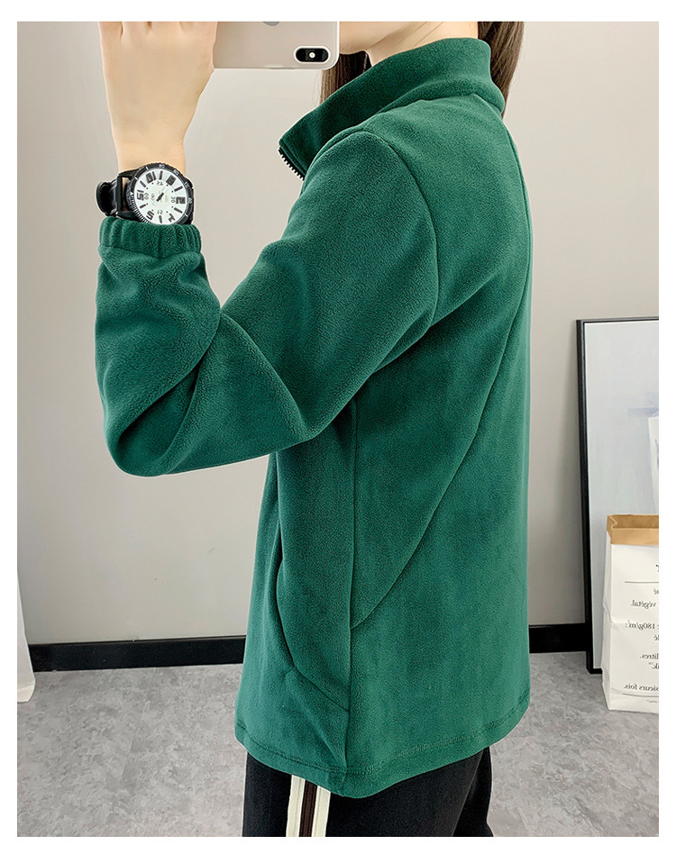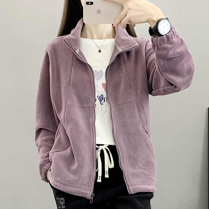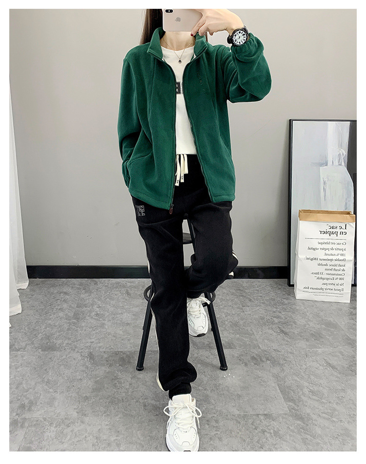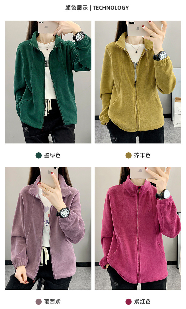 야외 양털 옷 여성용 양면 양털 가을과 겨울 기모 두꺼운 따뜻한 재킷 단색 양털 통기성 지퍼 카디건스토어 가기