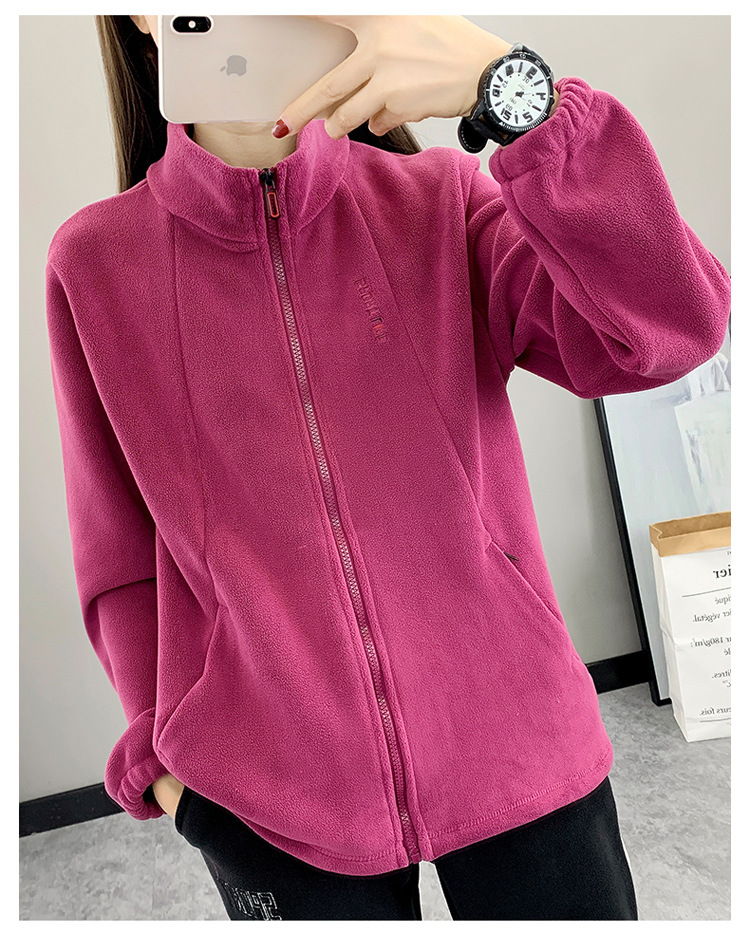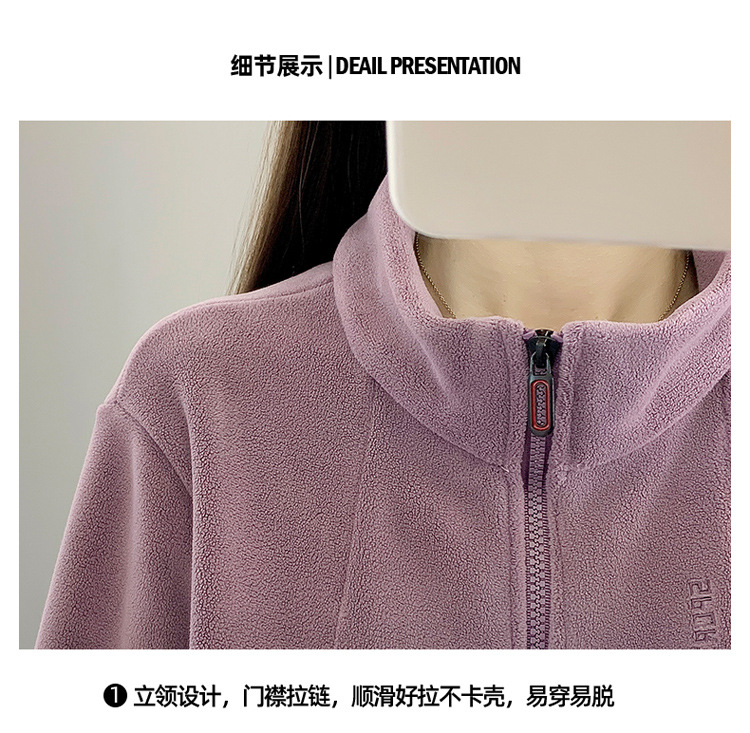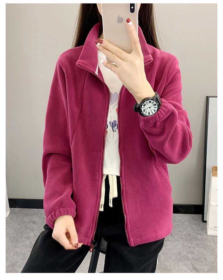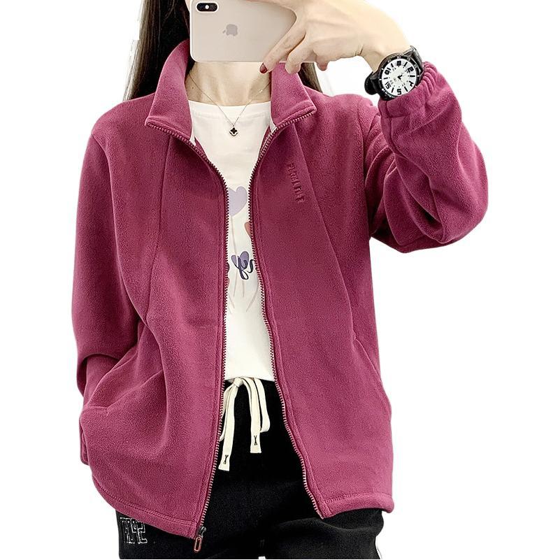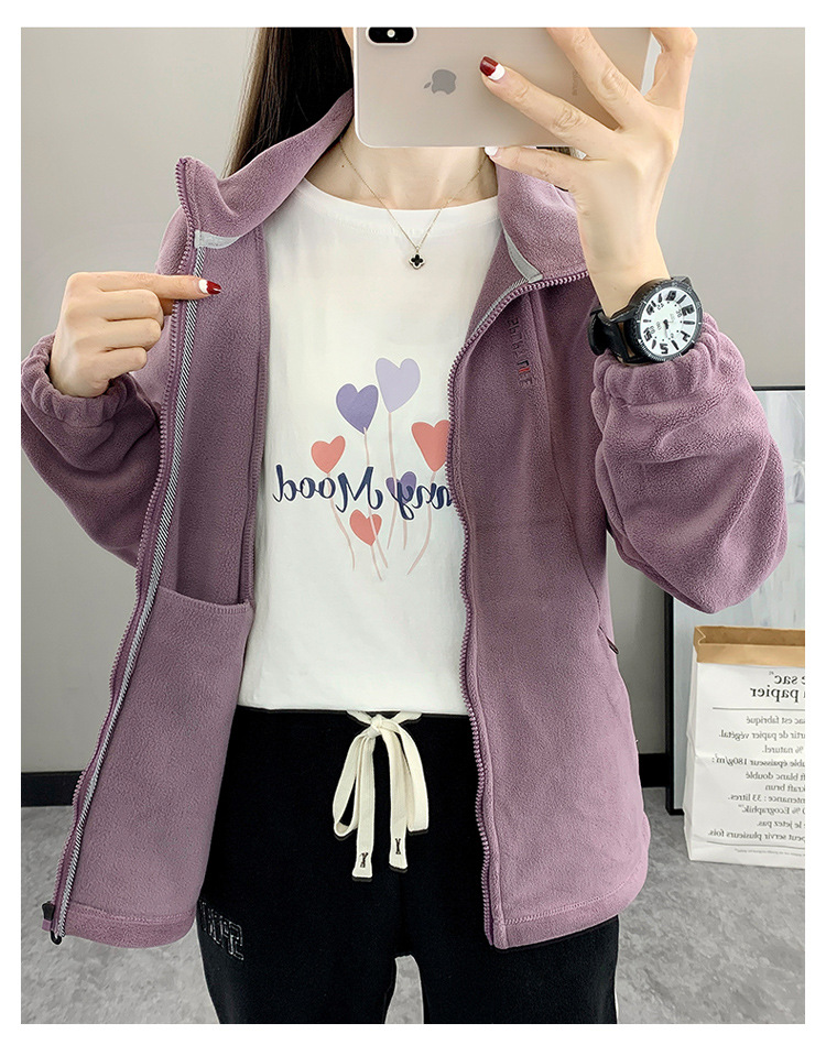 야외 양털 옷 여성용 양면 양털 가을과 겨울 기모 두꺼운 따뜻한 재킷 단색 양털 통기성 지퍼 카디건