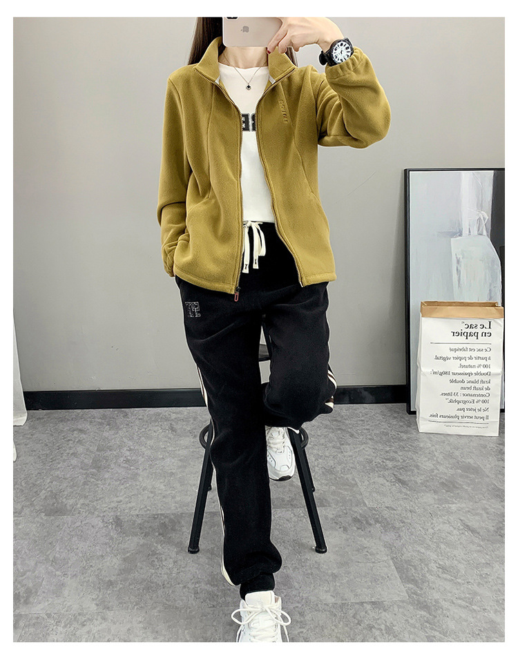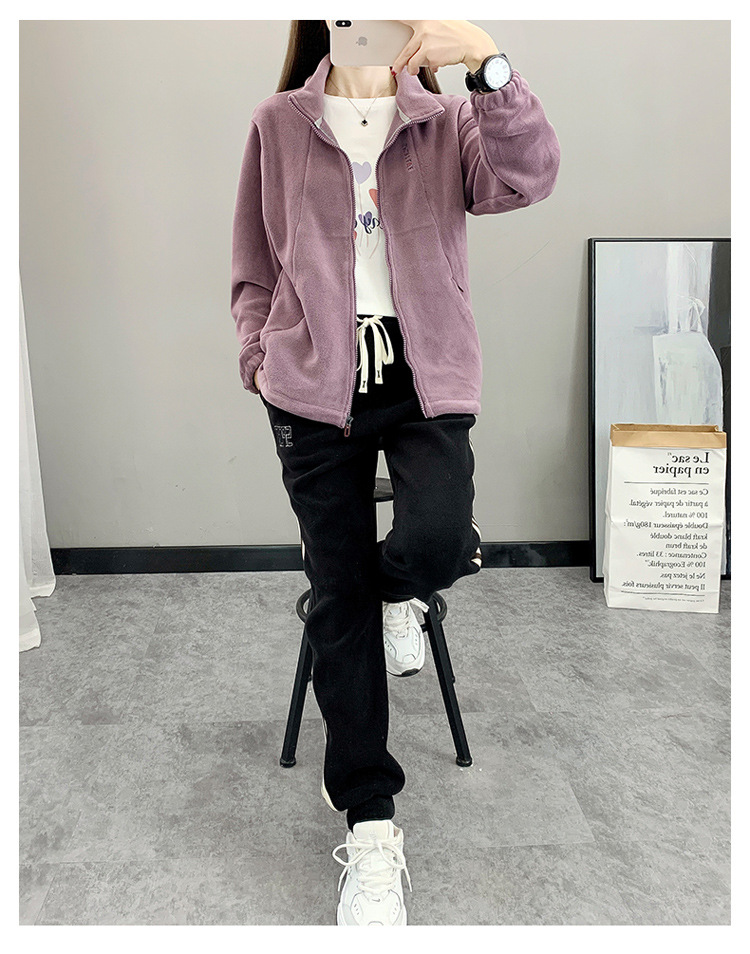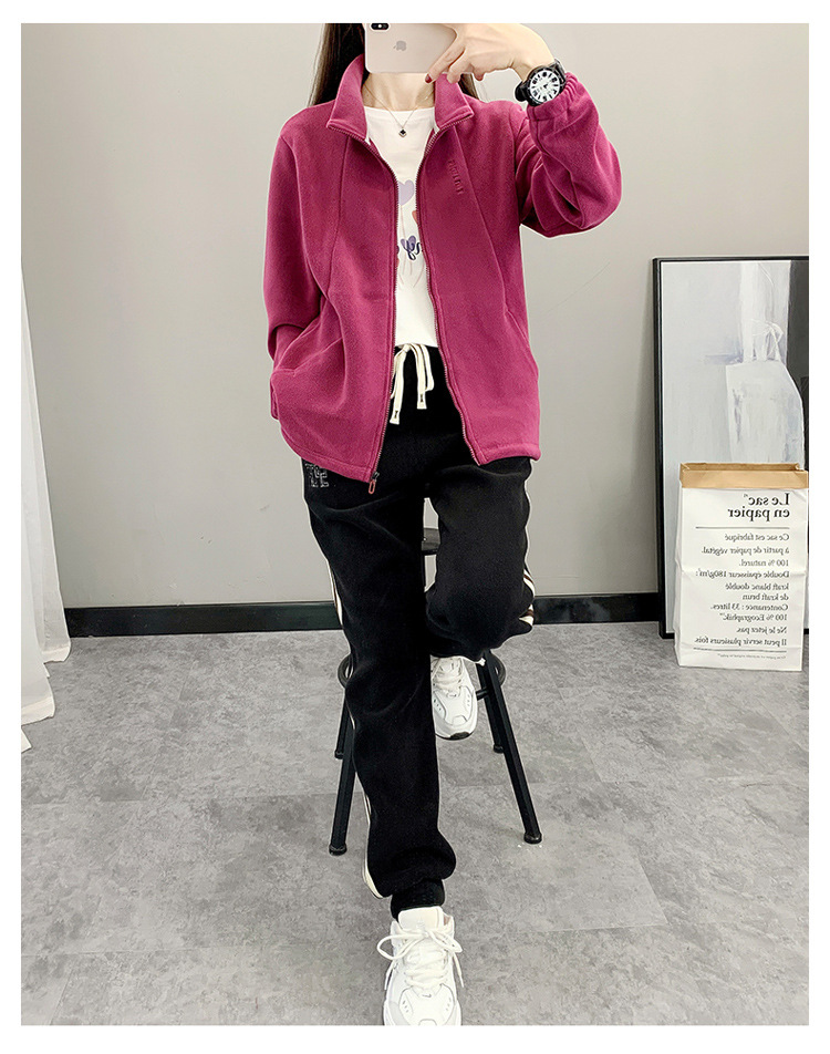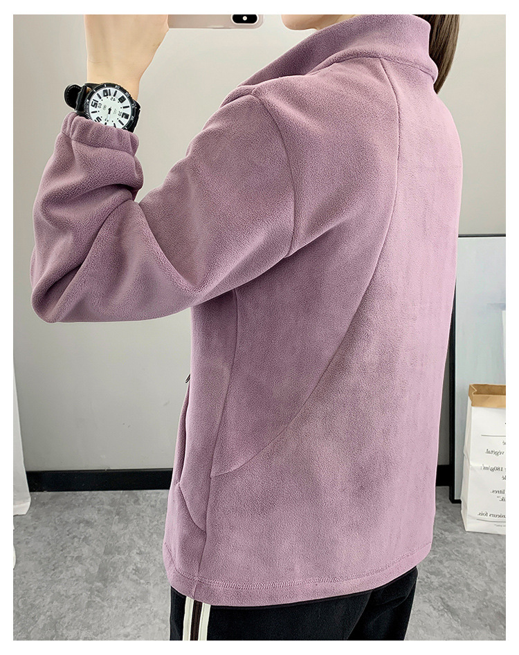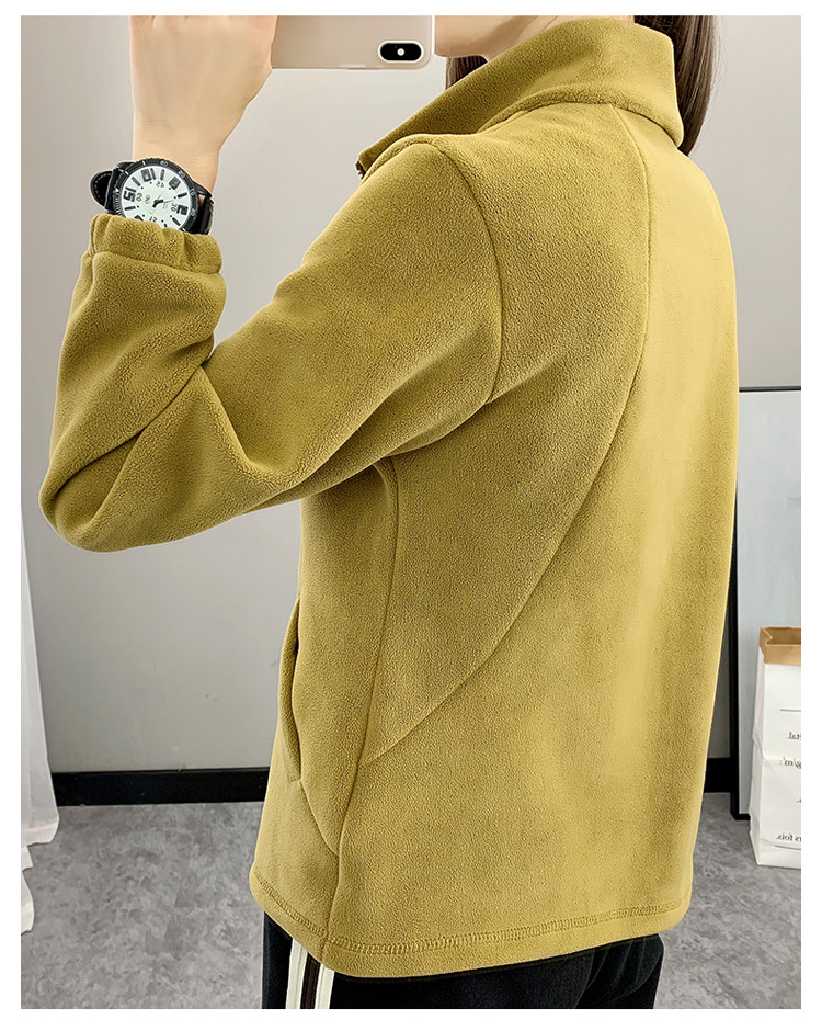 야외 양털 옷 여성용 양면 양털 가을과 겨울 기모 두꺼운 따뜻한 재킷 단색 양털 통기성 지퍼 카디건