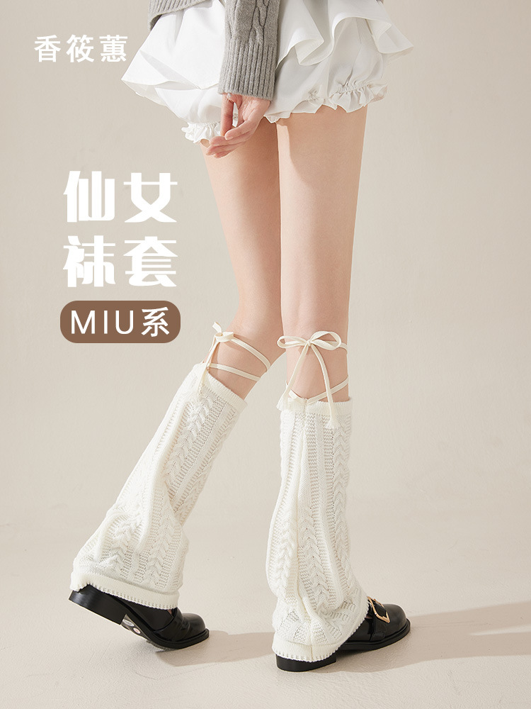 Y2K 스타일 꼬임 패턴 플레어형 단색 모직 두꺼운 니트 양말 커버 일본식 보온 레그 워머 여성용 달콤하고 시크한 스타일스토어 가기