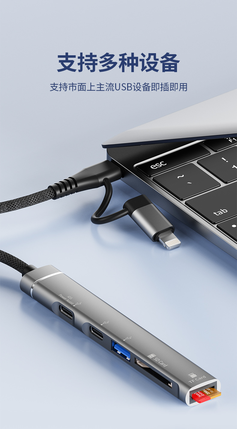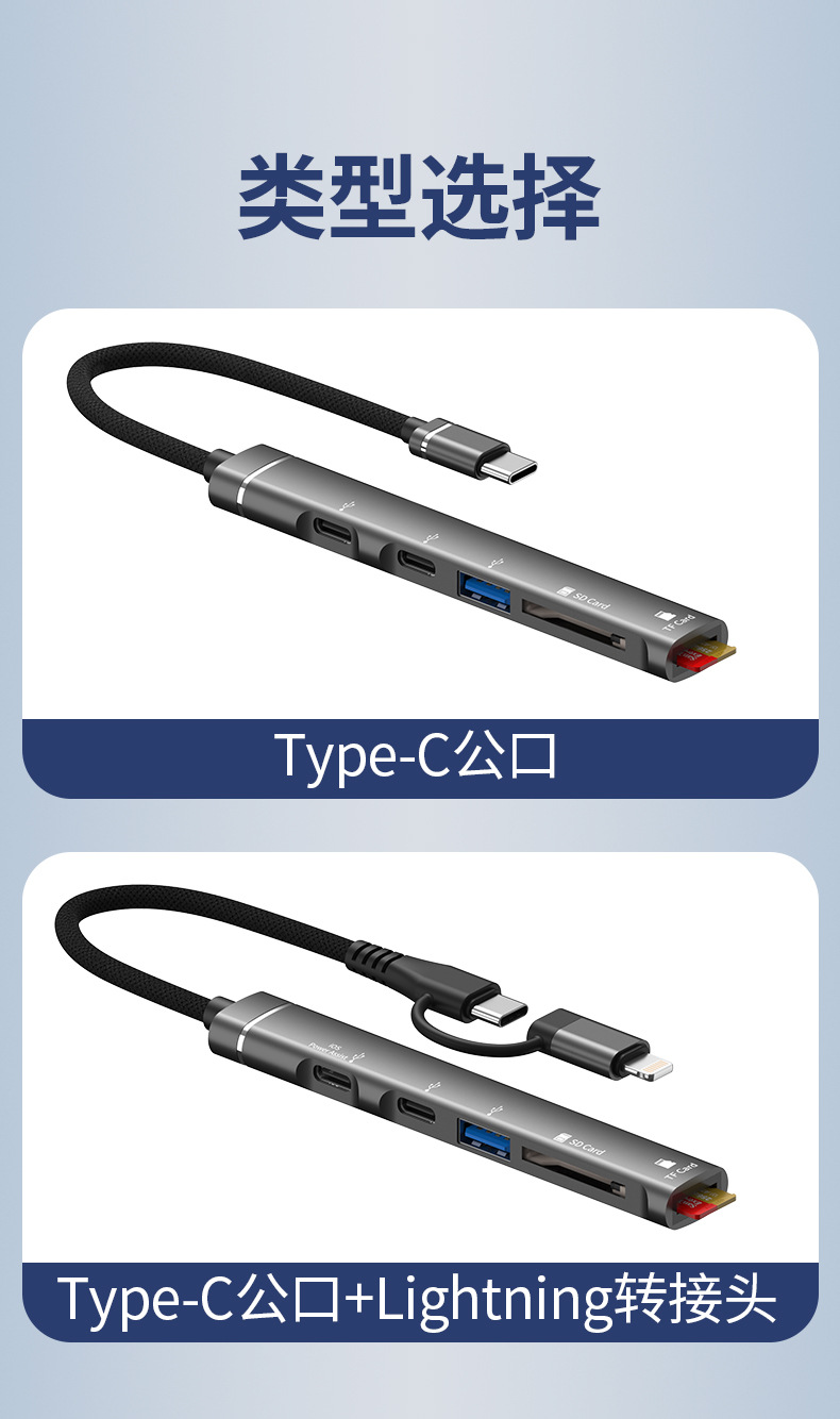 • 그레이 [Type-C/Apple 투인원] USB 포트+Type-c 포트*2+SD+TF