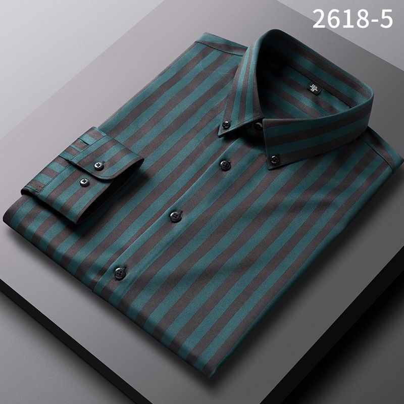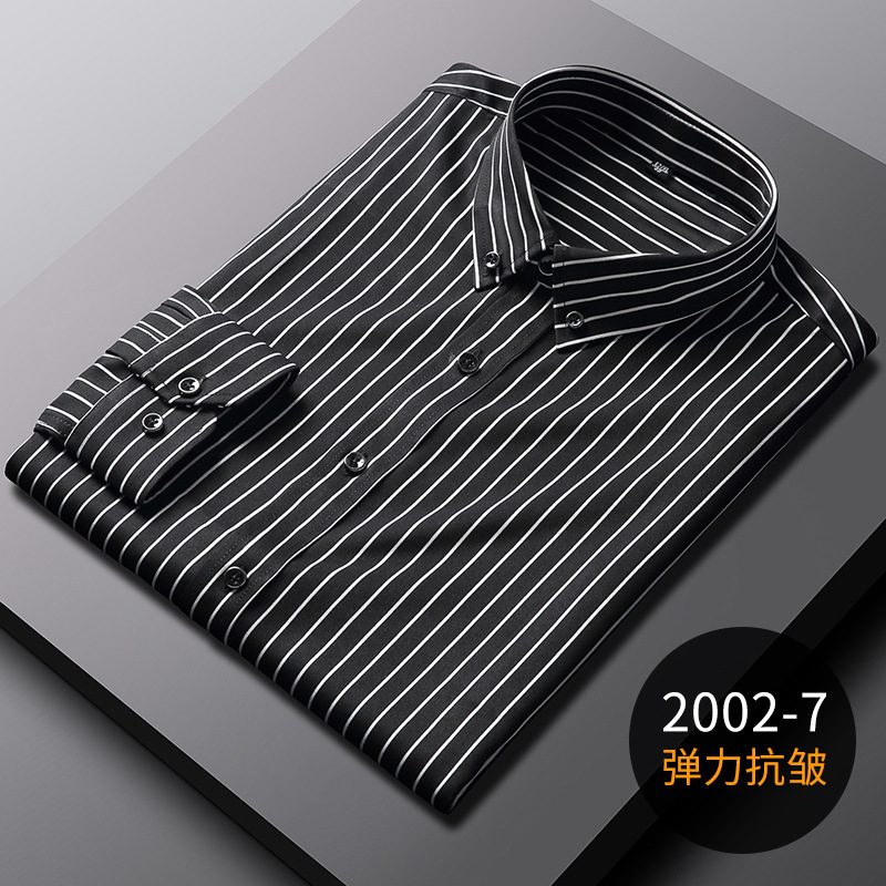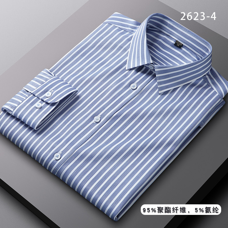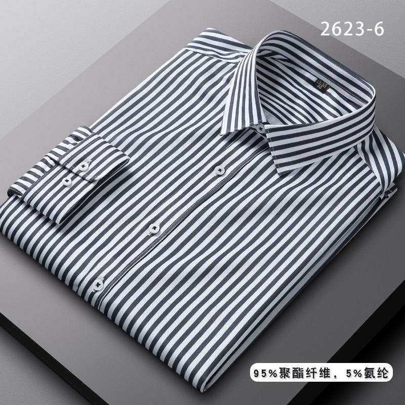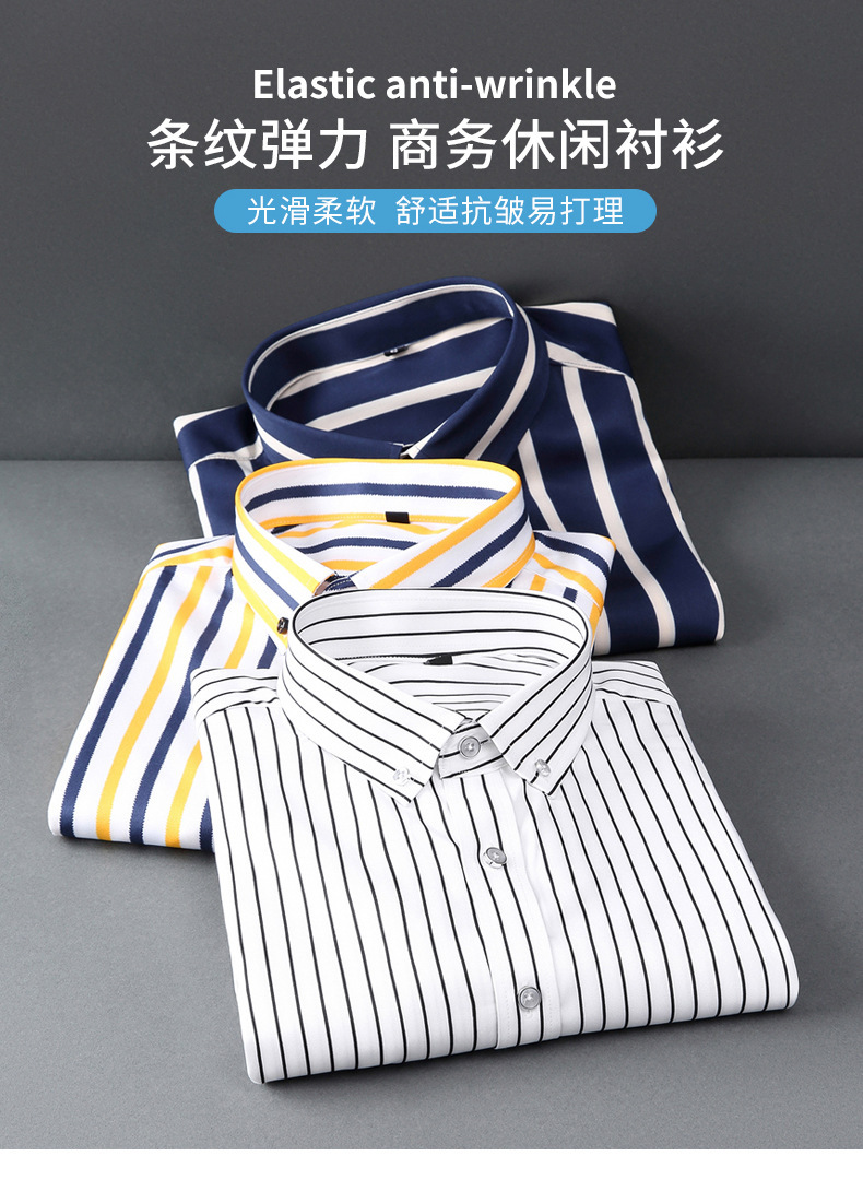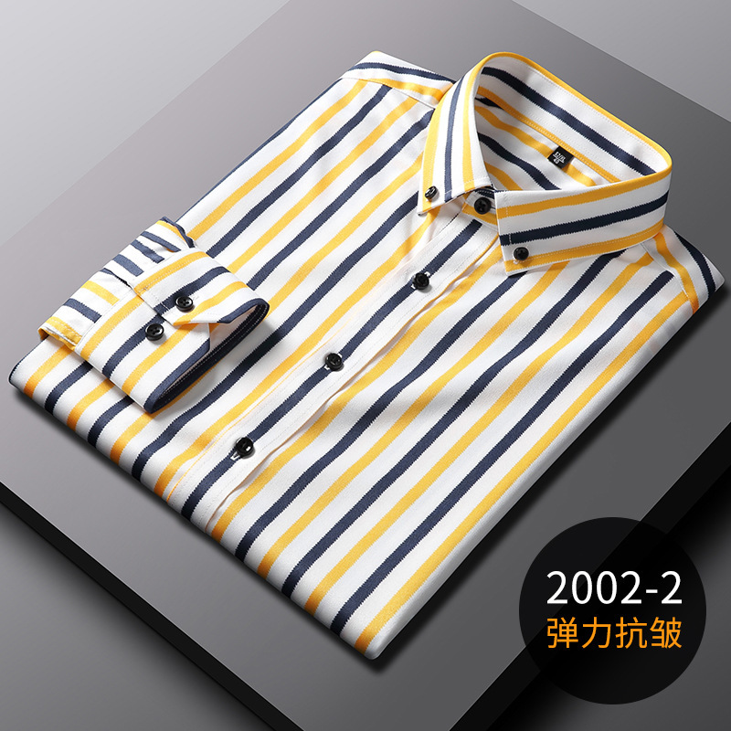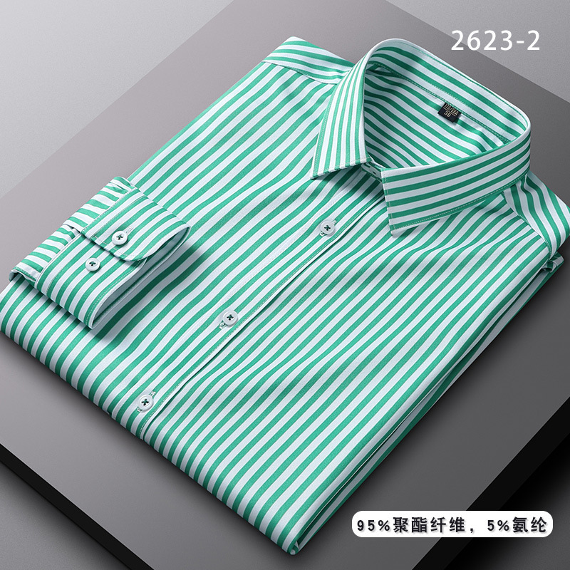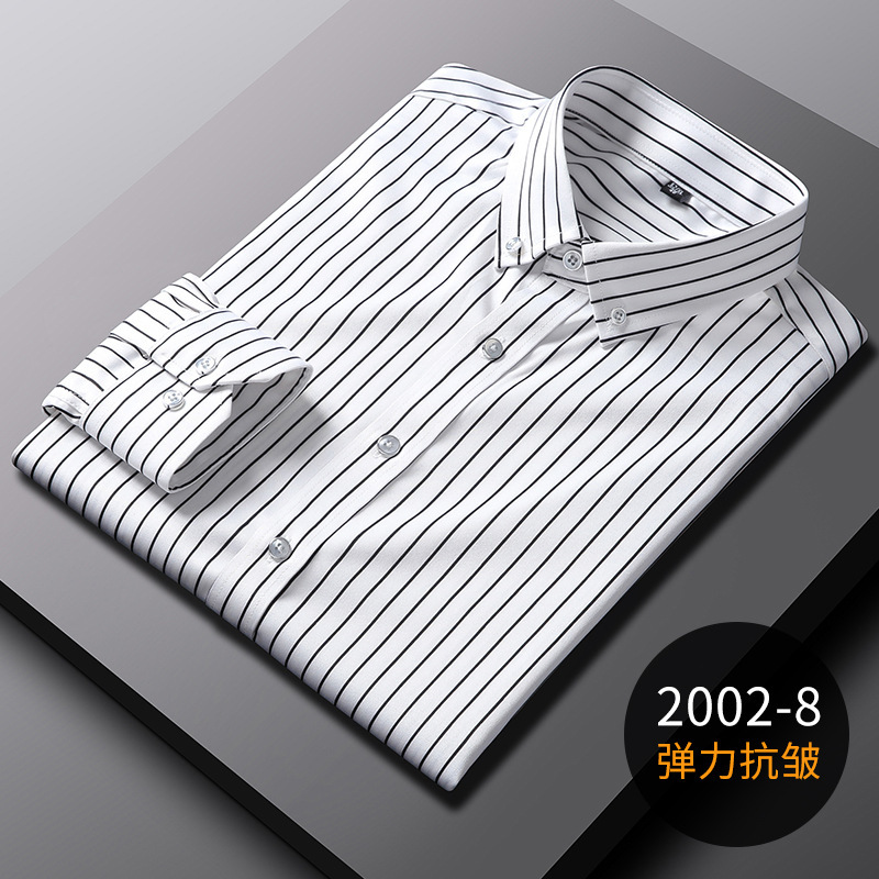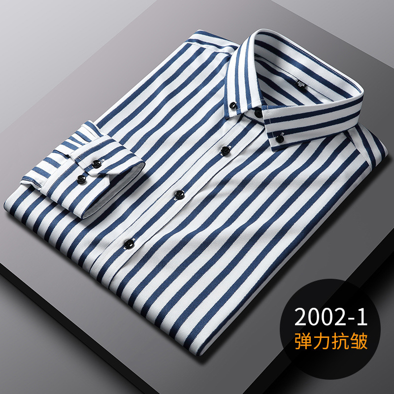 새로운 봄 간편한 스트라이프 셔츠 남성용 긴팔 스트레치 슬림 핏 남성용 비즈니스 라이트 럭셔리 남성용 비 다림질