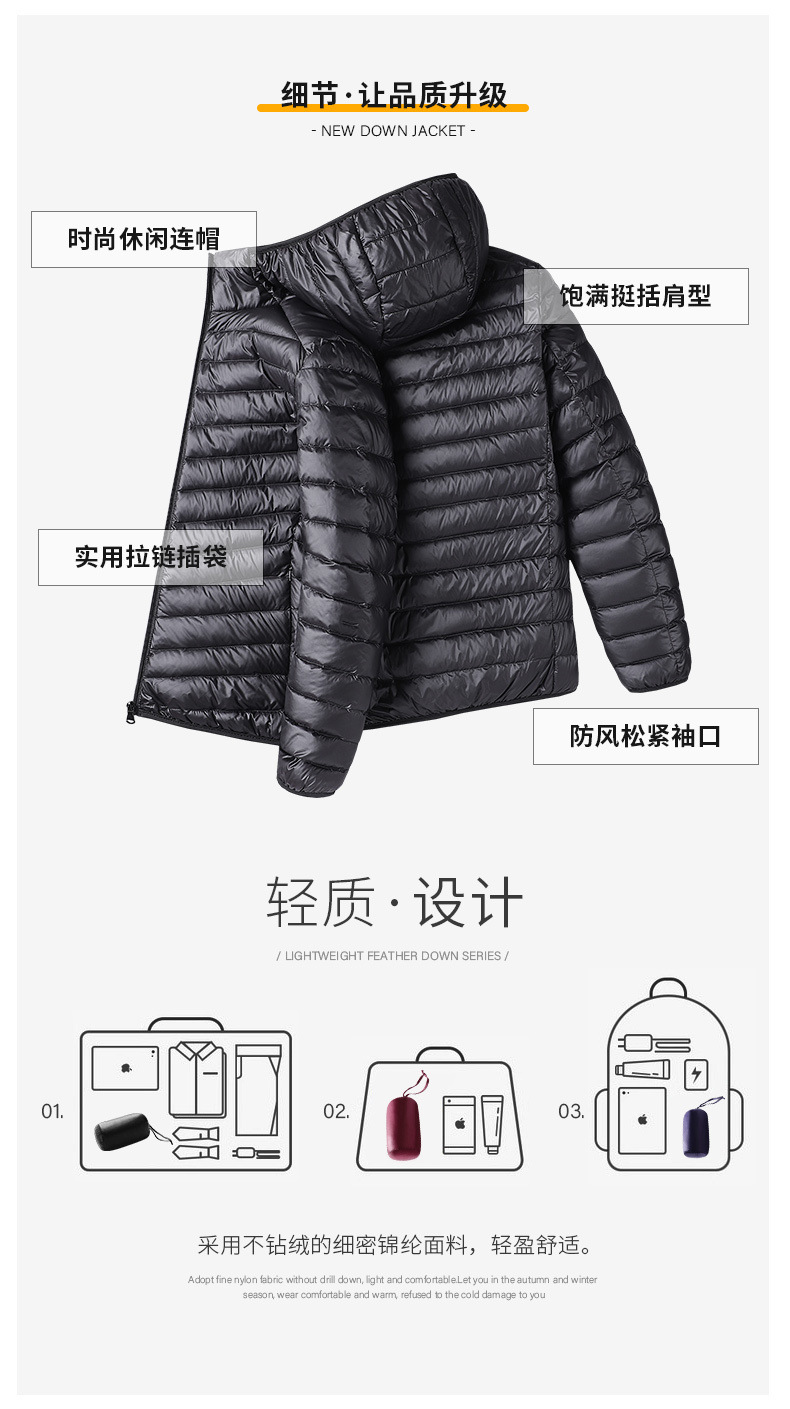 국경을 넘는 새로운 남성 다운 재킷 겨울 라이트 후드 플러스 사이즈 스탠드 칼라 50 화이트 오리 다운 재킷 재킷스토어 가기