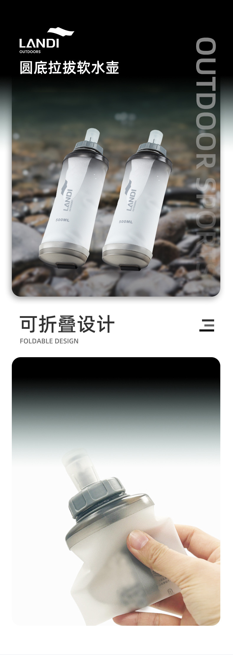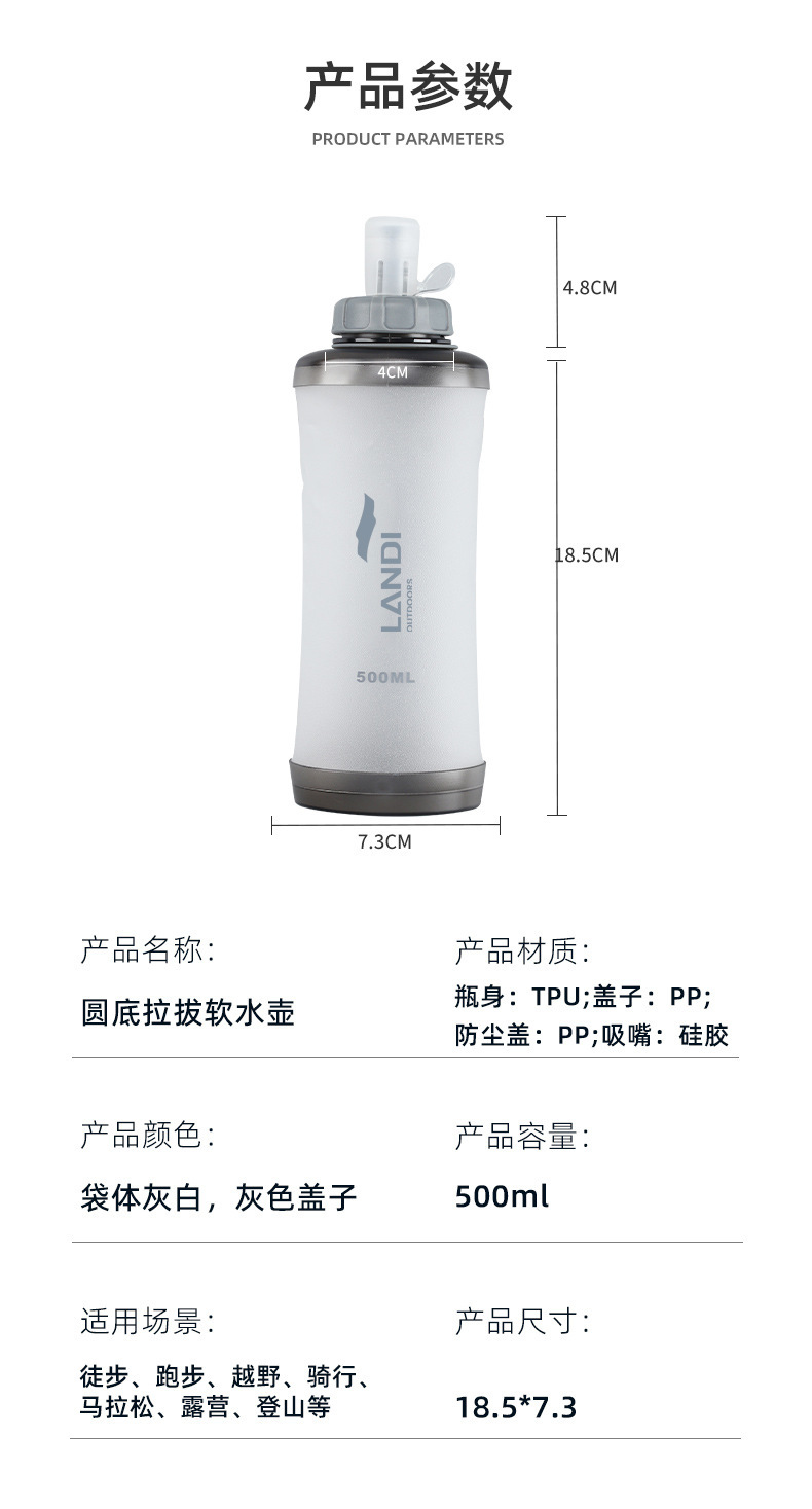 국경 간 인기 스포츠 소프트 물병, 접이식 소프트 워터 백, 크로스 컨트리 러닝 워터 백, 마라톤 휴대용 물컵