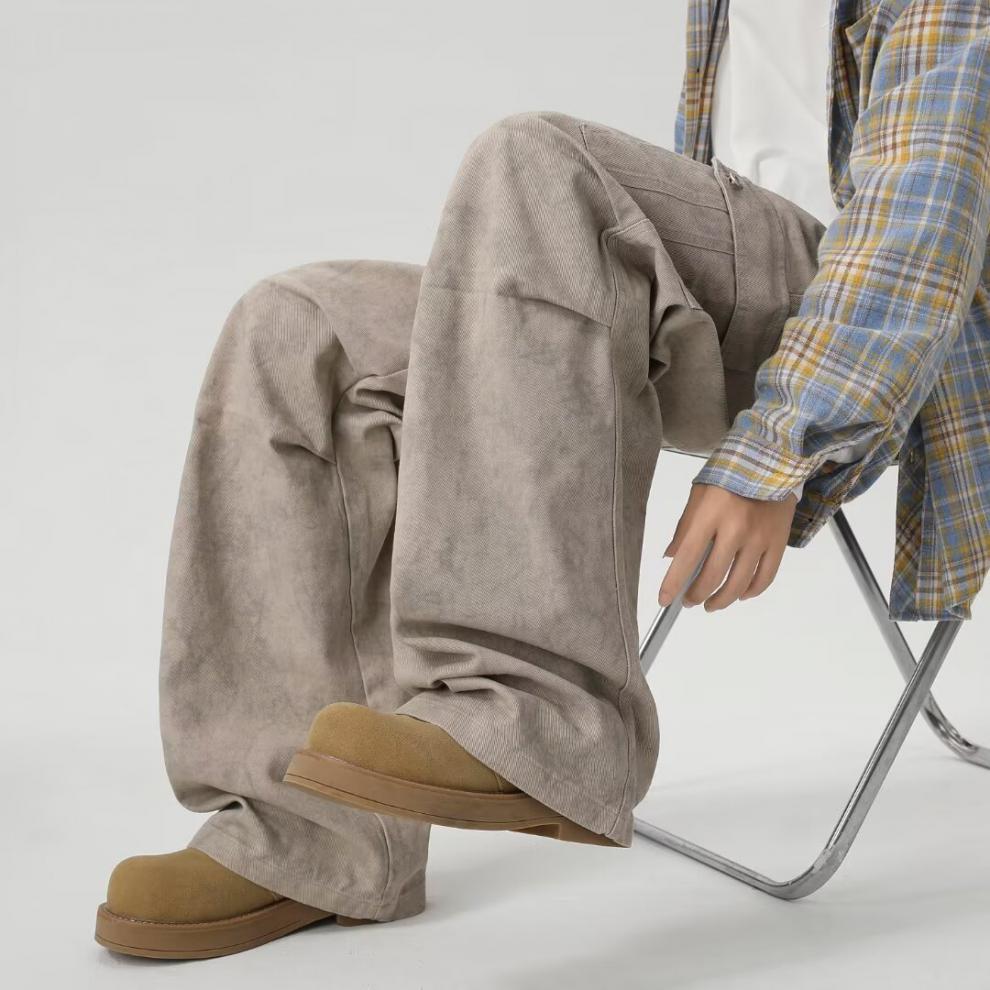 2024 새로운 도착 느슨한 캐주얼 바지 남자 한국 스타일 유행 올 매치 바지 여름 얇은 펜던트 넓은 다리 바지