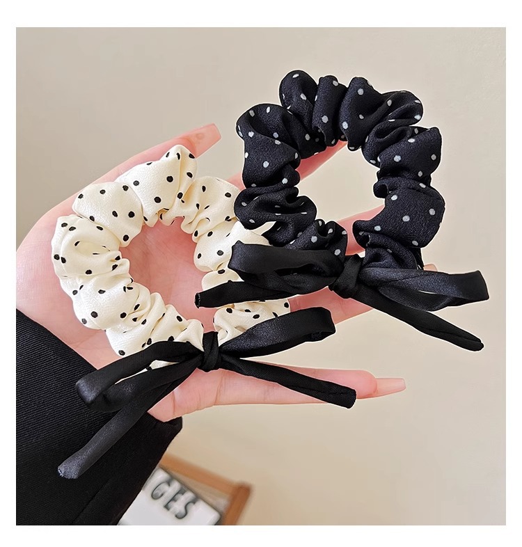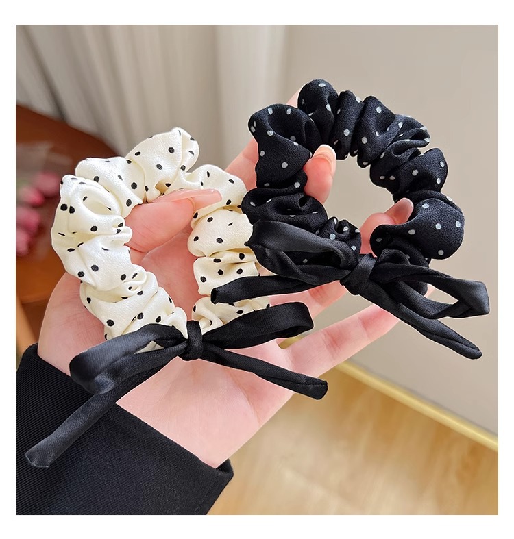 빈티지 폴로 도트 활 작은 내장 헤어 링 소녀 샤넬 스타일 헤어 로프 더블 포니 테일 고무 텐트 헤어 로프 헤어 액세서리 새로운스토어 가기