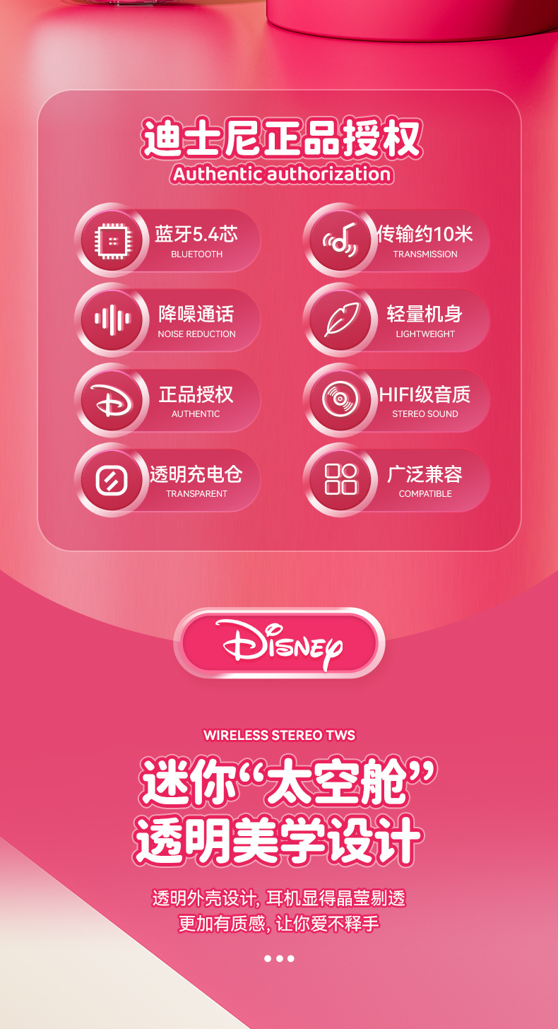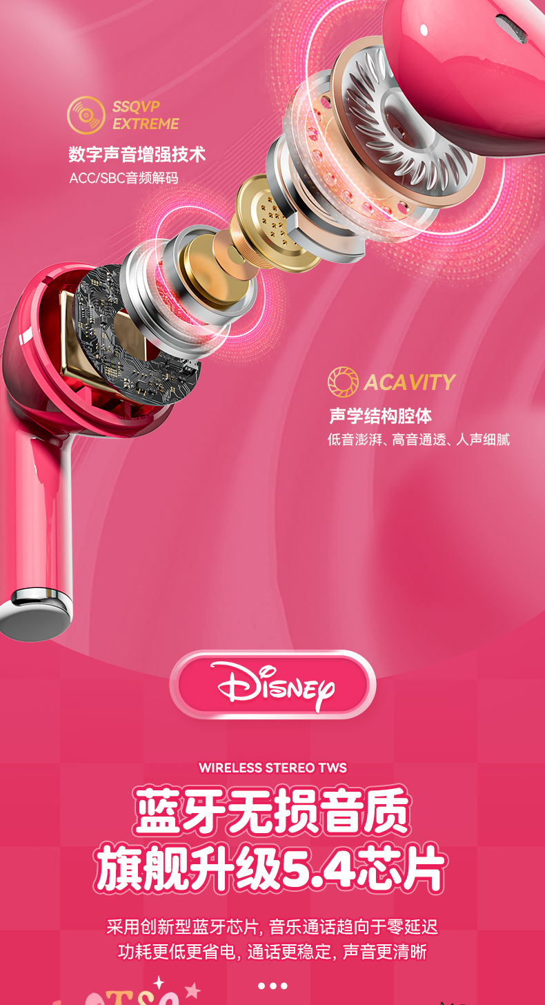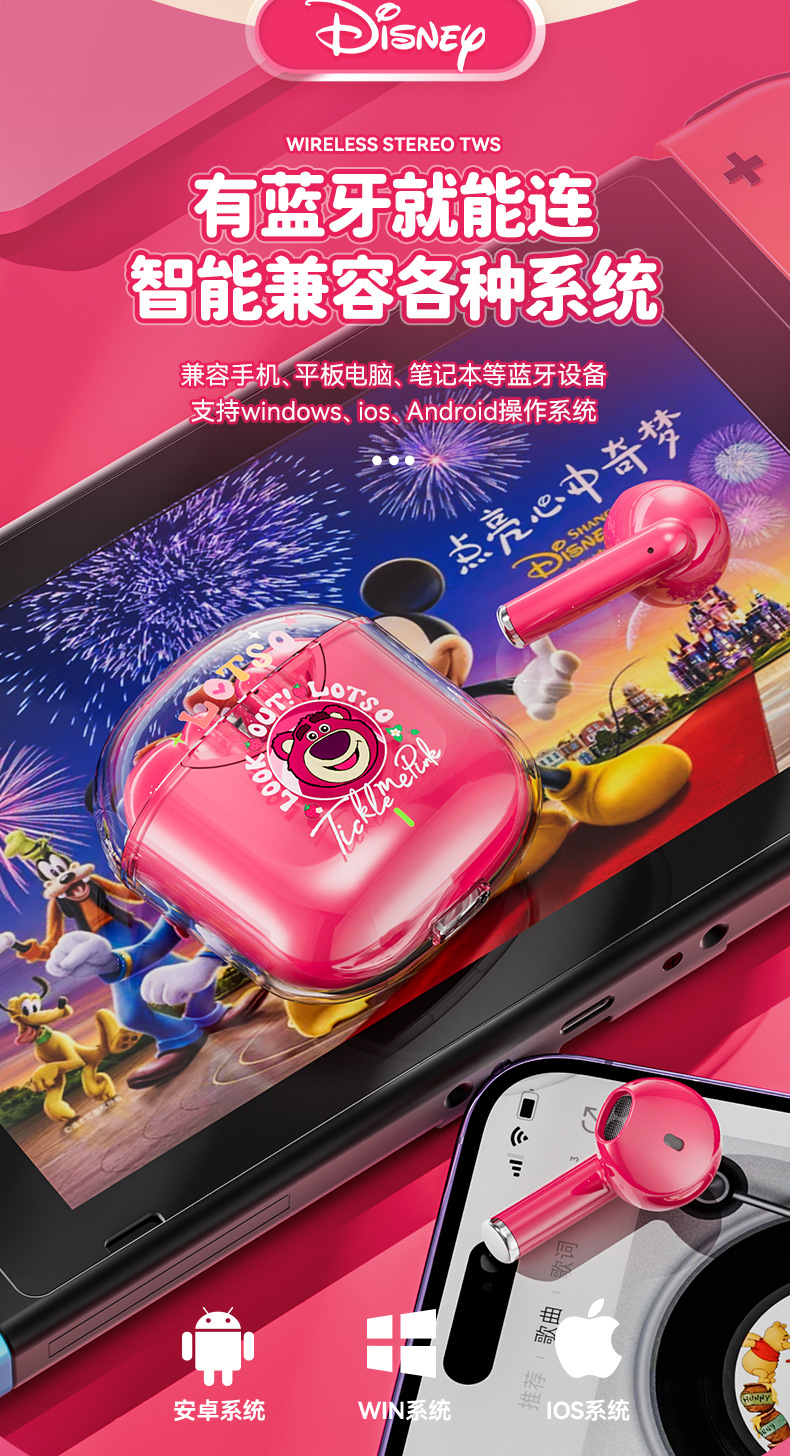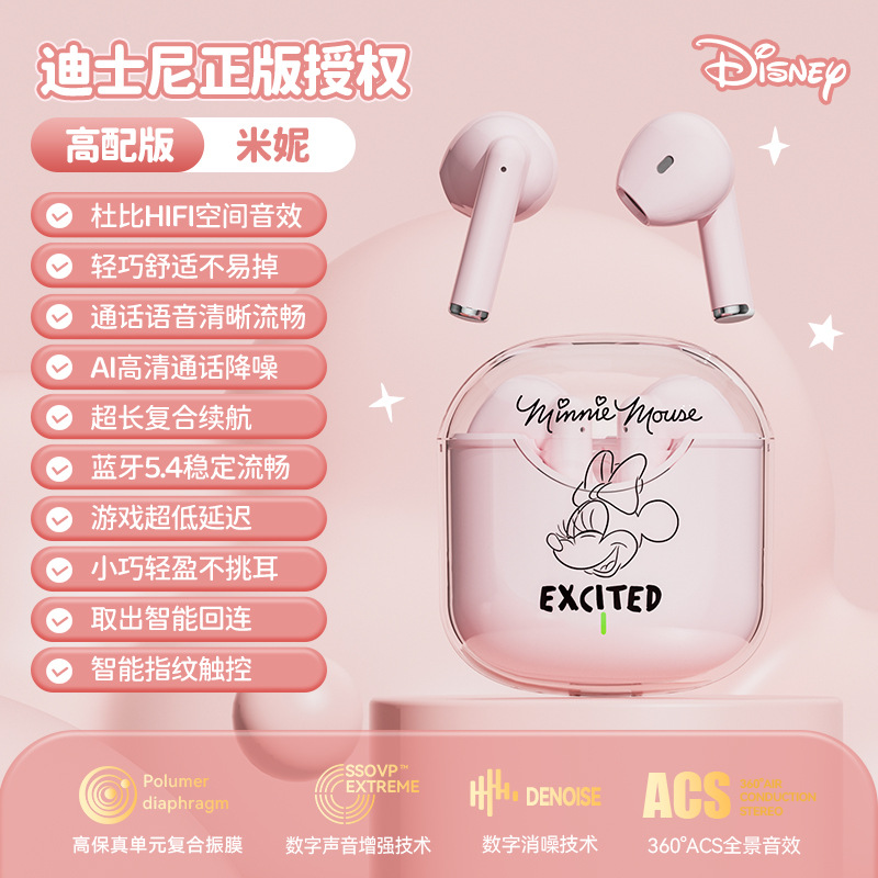 디즈니/디즈니 무선 블루투스 헤드셋 고급스러운 학생 헤드셋 소년 소녀 야외 러닝 헤드셋