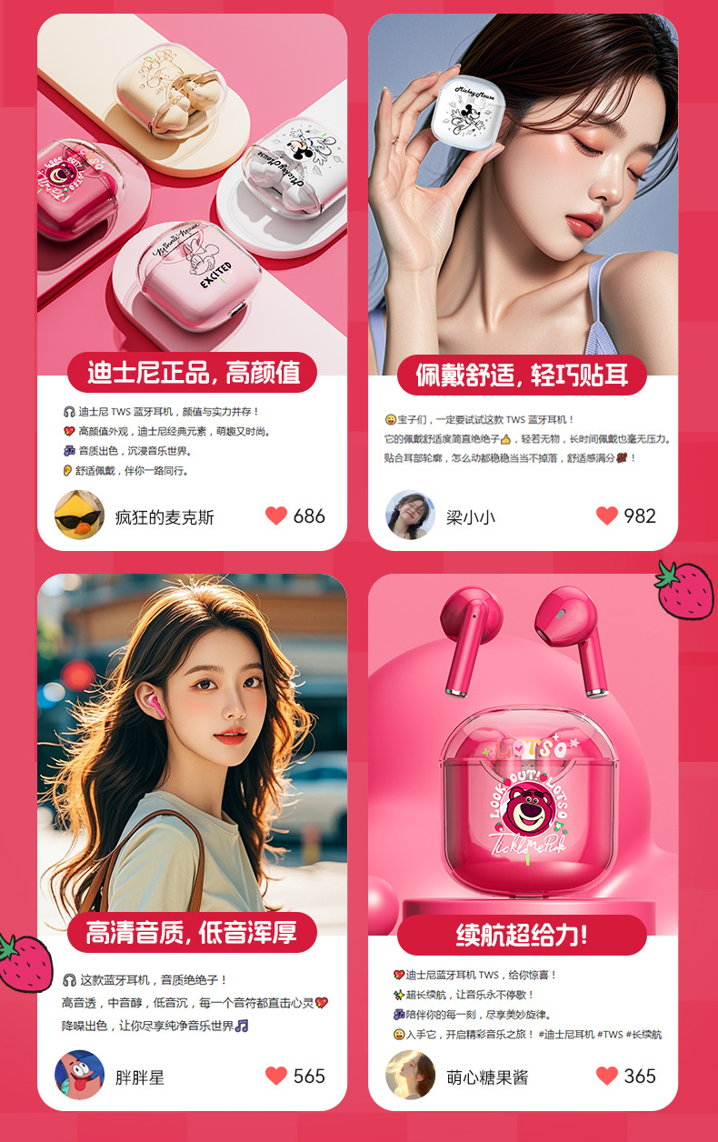 디즈니/디즈니 무선 블루투스 헤드셋 고급스러운 학생 헤드셋 소년 소녀 야외 러닝 헤드셋스토어 가기