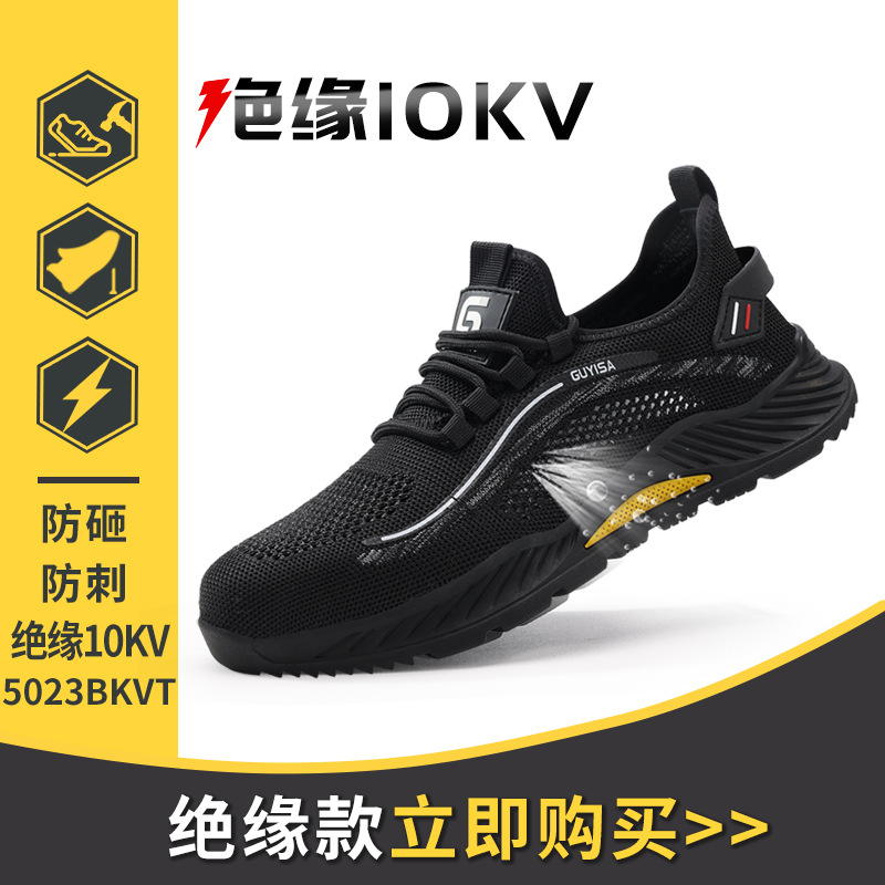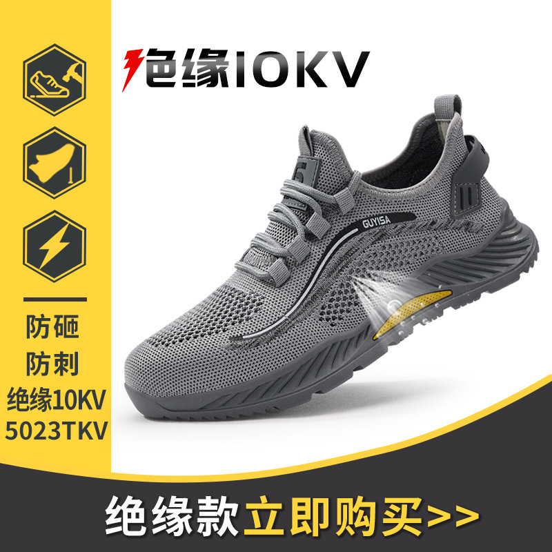 남성용 여름 작업화, 충격 방지, 관통 방지, 안전하고 내마모성, 건설 현장용, 미끄럼 방지, 통기성, 절연, 10KV 전기 작업화스토어 가기