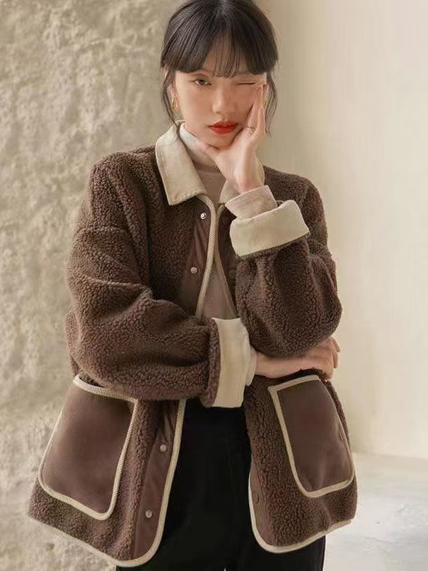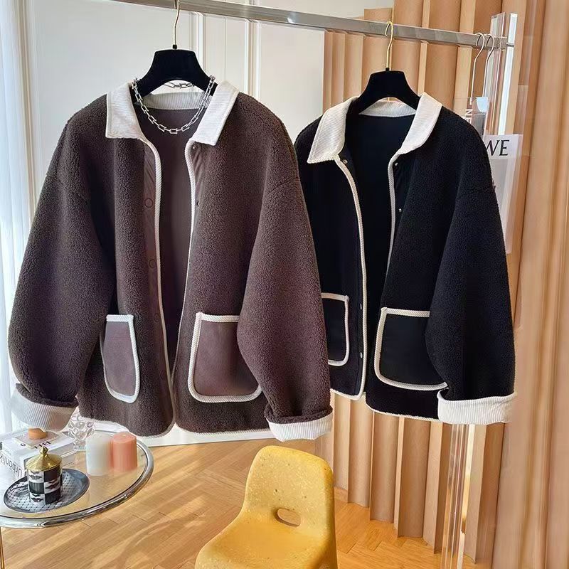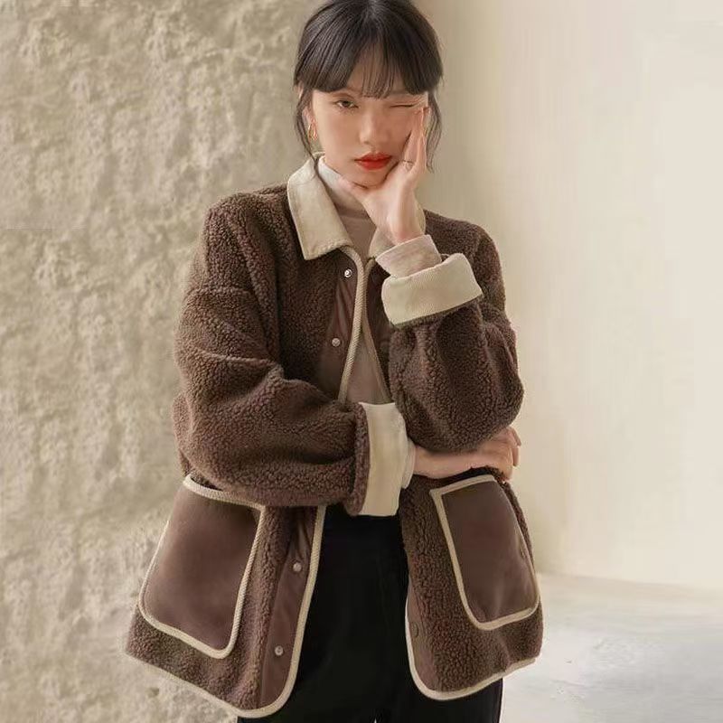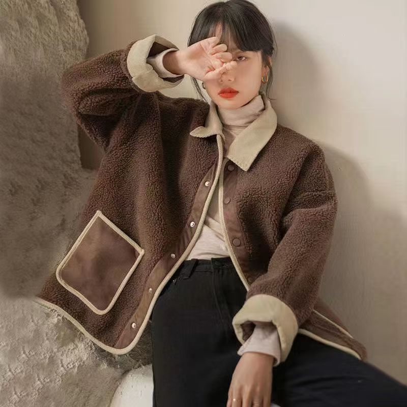 2025 가을 겨울 신상 프랑스 스타일 두꺼운 모피 일체형 여성용 짧은 부드러운 양털 코트스토어 가기