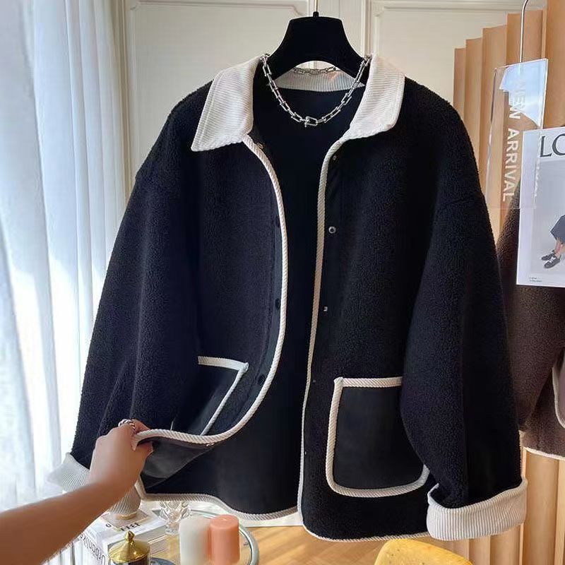 2025 가을 겨울 신상 프랑스 스타일 두꺼운 모피 일체형 여성용 짧은 부드러운 양털 코트