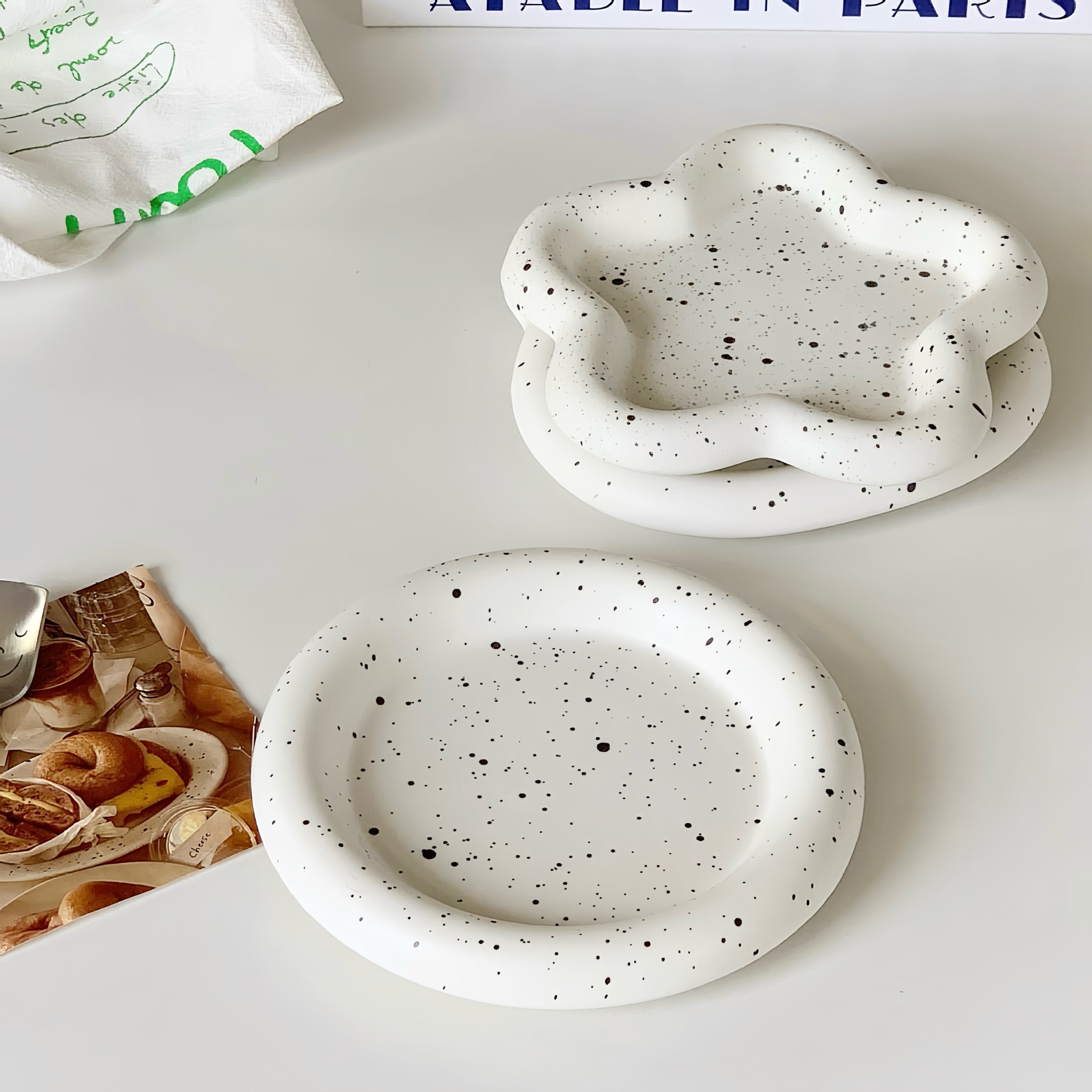 • 대형 스플래시 잉크 통통한 꽃 접시 - 약 20cm