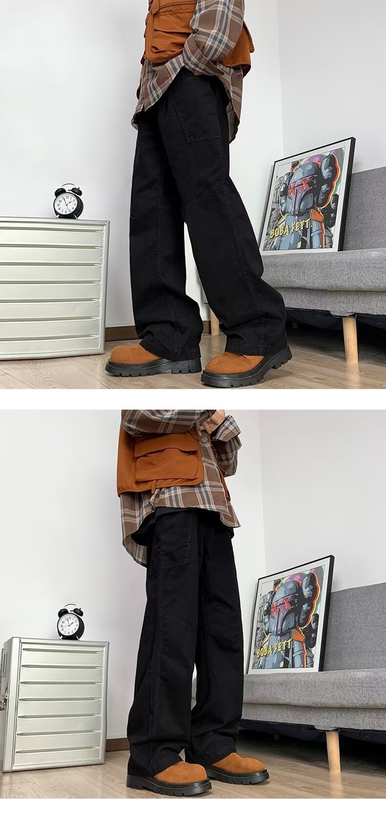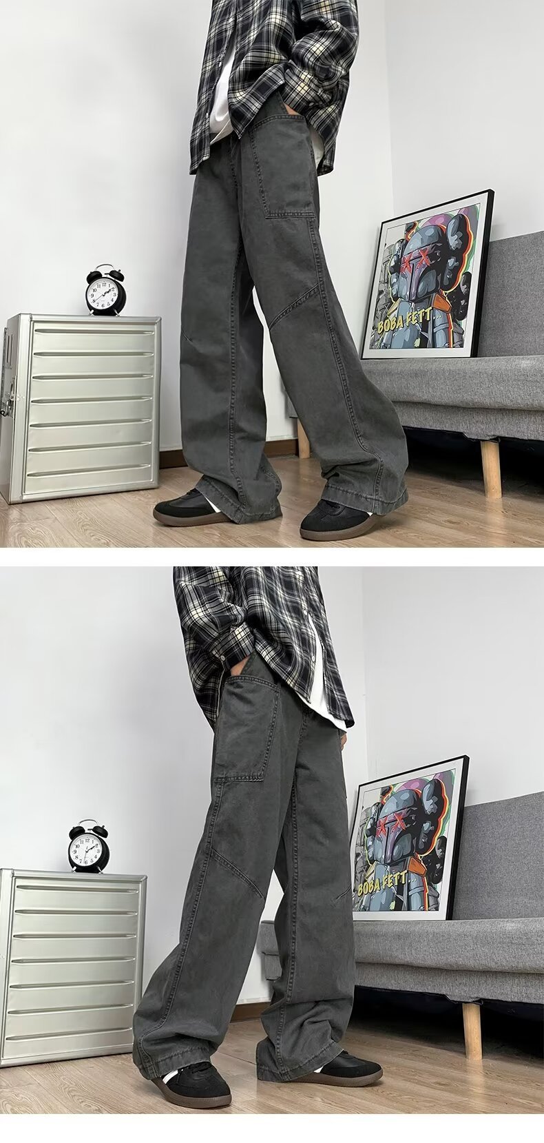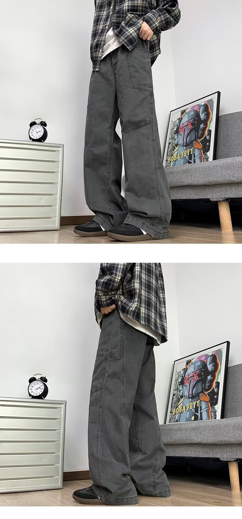 아메리칸 스트리트 세탁 오래 된 청바지 남성 봄과 가을 스트레이트 느슨한 유럽과 미국의 하이 스트리트 바이브 스타일 긴 바지스토어 가기